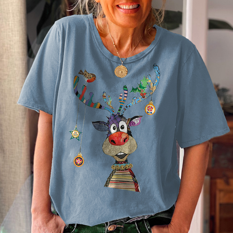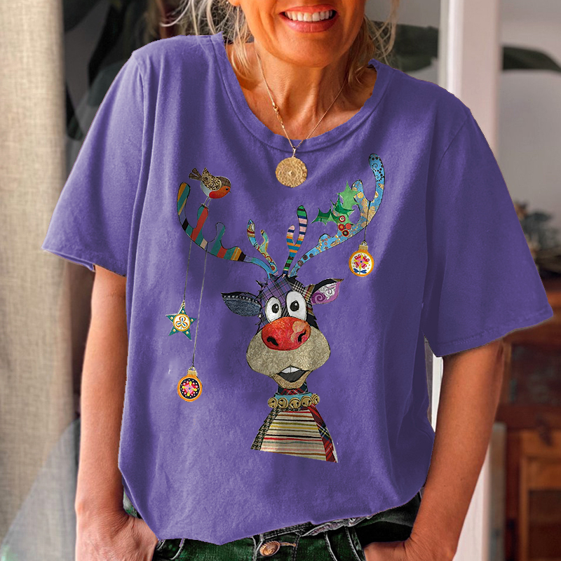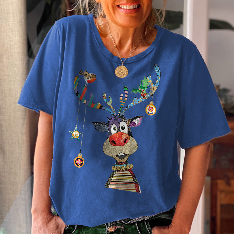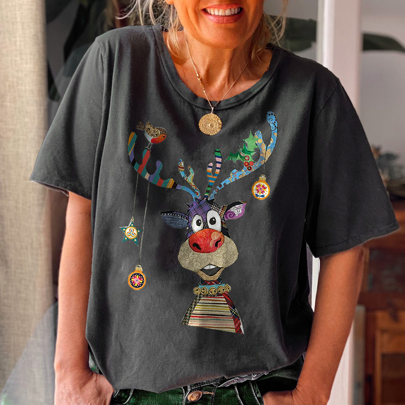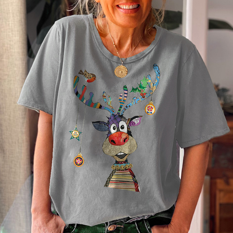 Product NameCrew Neck Featured Christmas Elk Printed Women's T-shirt