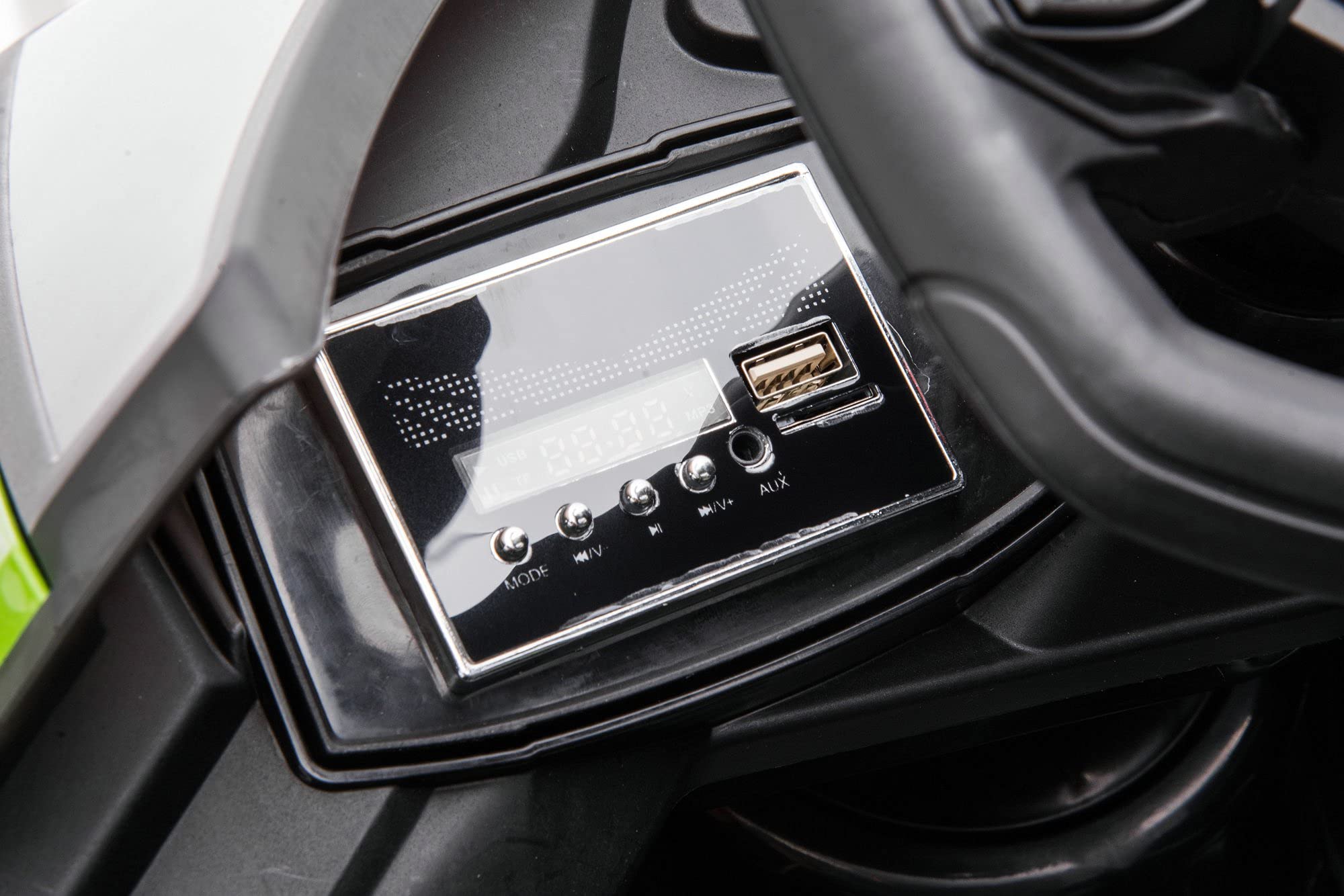 - Let the adventure begin withu00a0this ride-on Lambo V12 Vision Gran Turismo. Equipped with 4WD and EVA tires for better traction. Includes an MP3 player so you can download your childu2019s favorite cruising music, USB / SP Card,u00a0Bluetooth,u00a0FM-Radio.