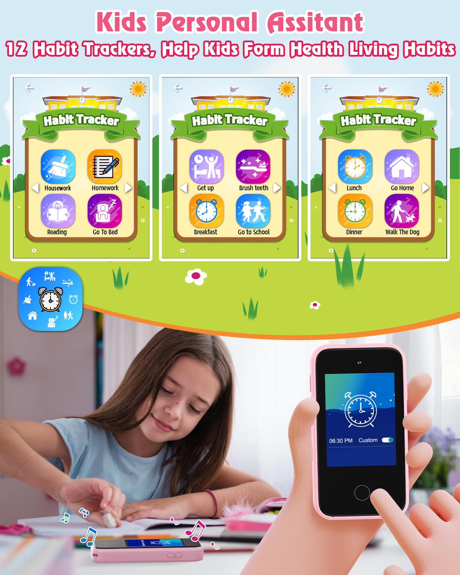 - u23f0 Habit Form Helper: An excellent life helper for kids aged 3-8! With multiple functions such as alarm, timer, stopwatch, calendar etc, you can freely set different modes to remind kids to wake up, brush teeth, exercise, have breakfast, go to school and more. This play phone can help children to manage their time and form a healthy lifestyle.