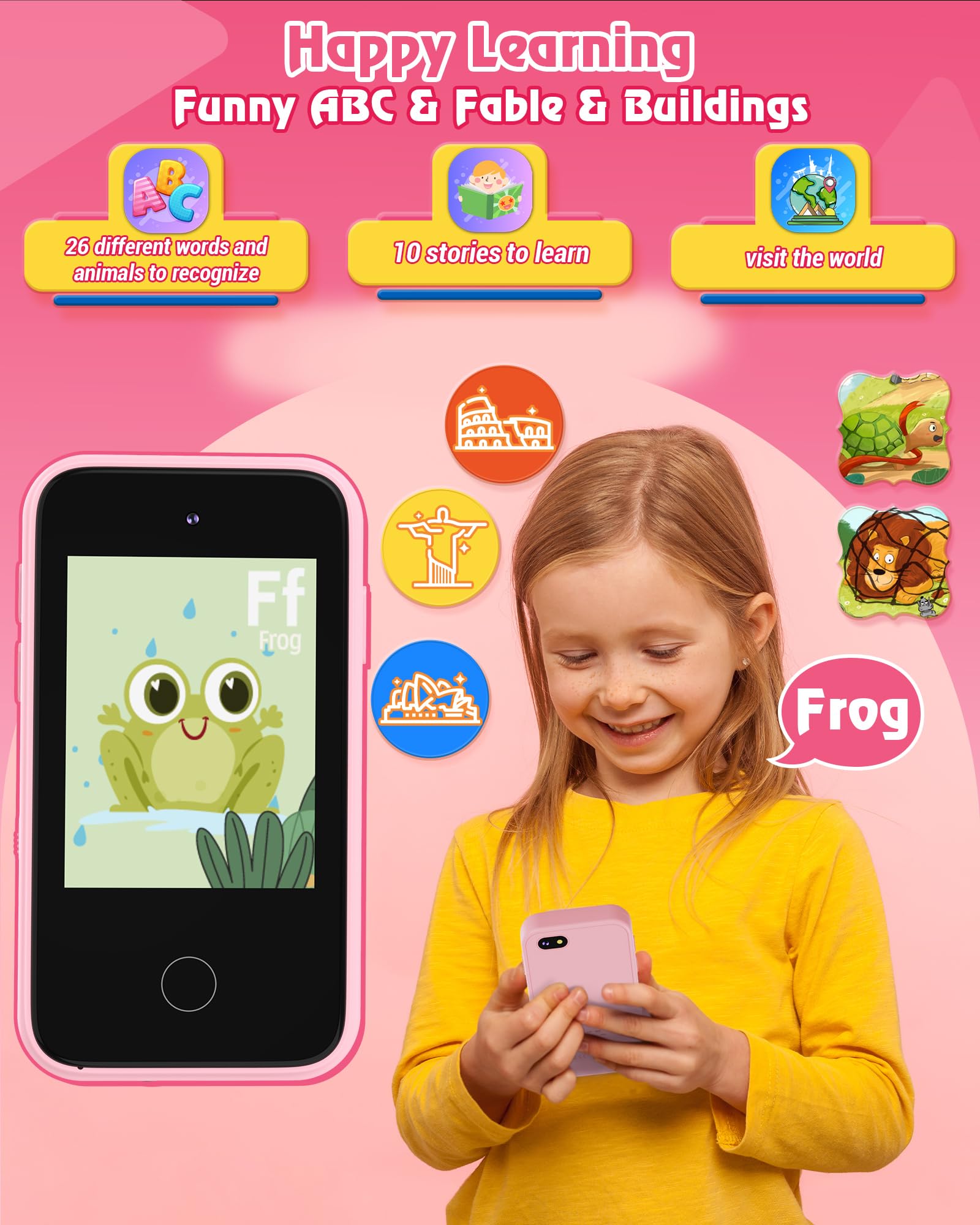- ud83dudc9d Perfect Gifts for Kids: Still struggling with what gift to present to your kids? Then you should turn your eyes to this product, our toddler phone made with non- toxic material, safe and comfortable for children's skin. Up to 18 apps can easily meet the needs of children's entertainment and learning, available in pink, blue and purple, a good birthday, Christmas, holiday gift choice for kids ages 3-8.