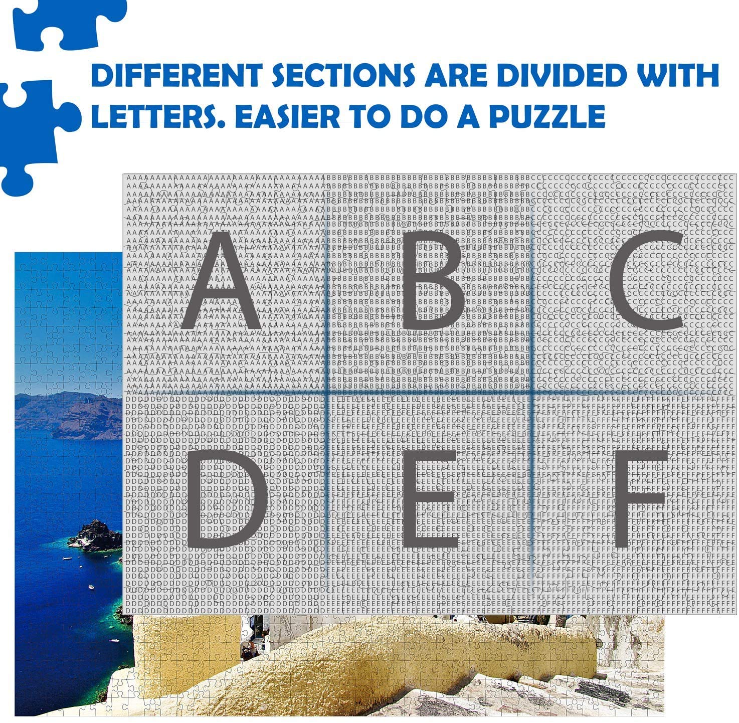 - Itu2019s not so easy to complete the puzzle, but once finished, you will be proud of yourself. A high definition poster has been included for reference, the back side area has been divided into several zones with letters marked as "A"- "F" which can make the work easier.
