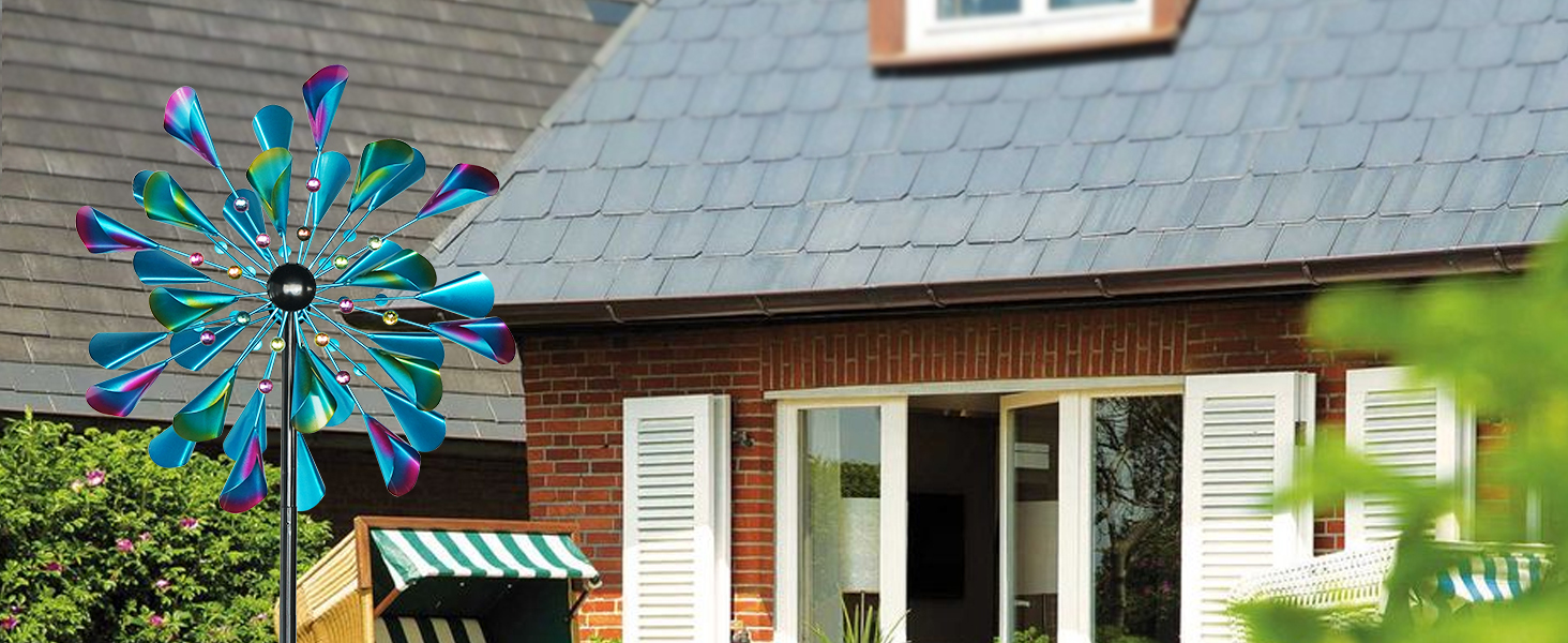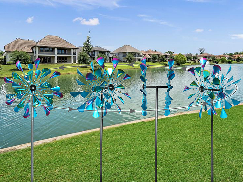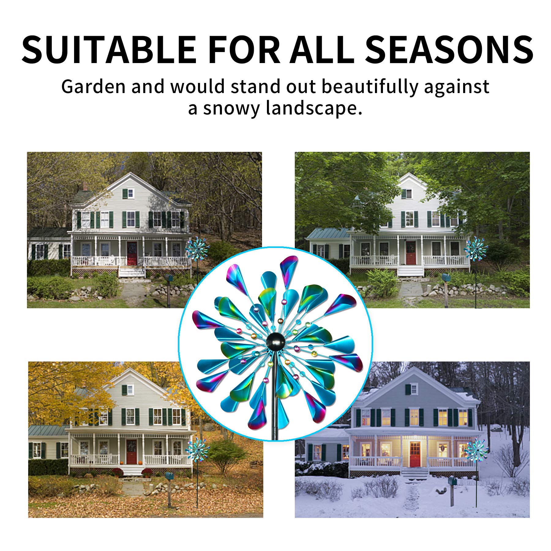 - ud83cudf00Mesmerizing Design & Movement: This eye-catching outdoor wind spinner features a unique fan blade design that moves beautifully in the wind, creating a mesmerizing display of light and movement.
