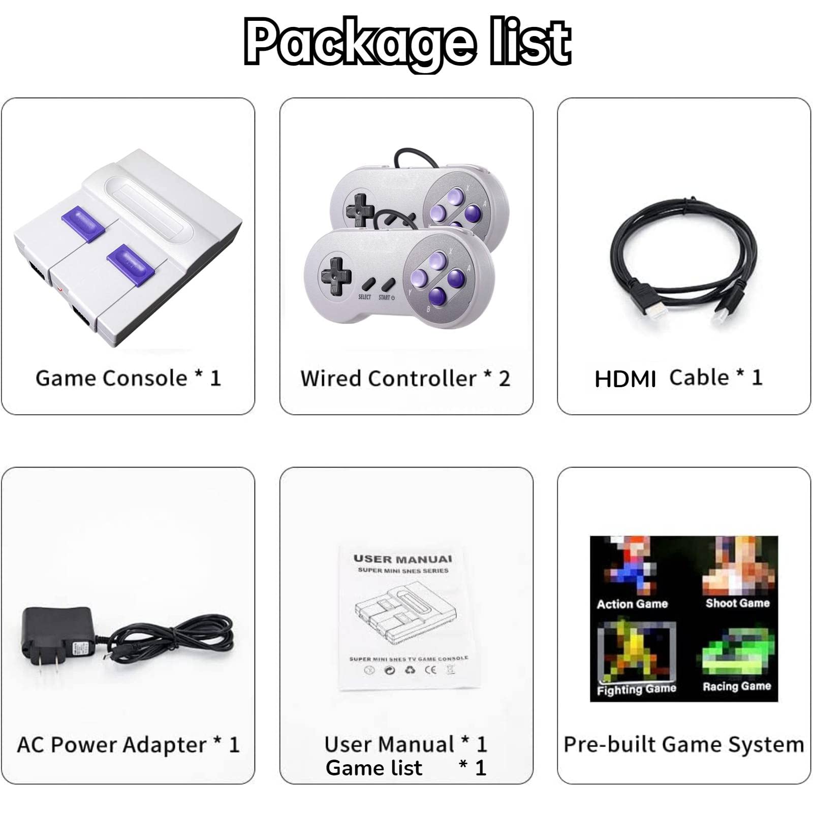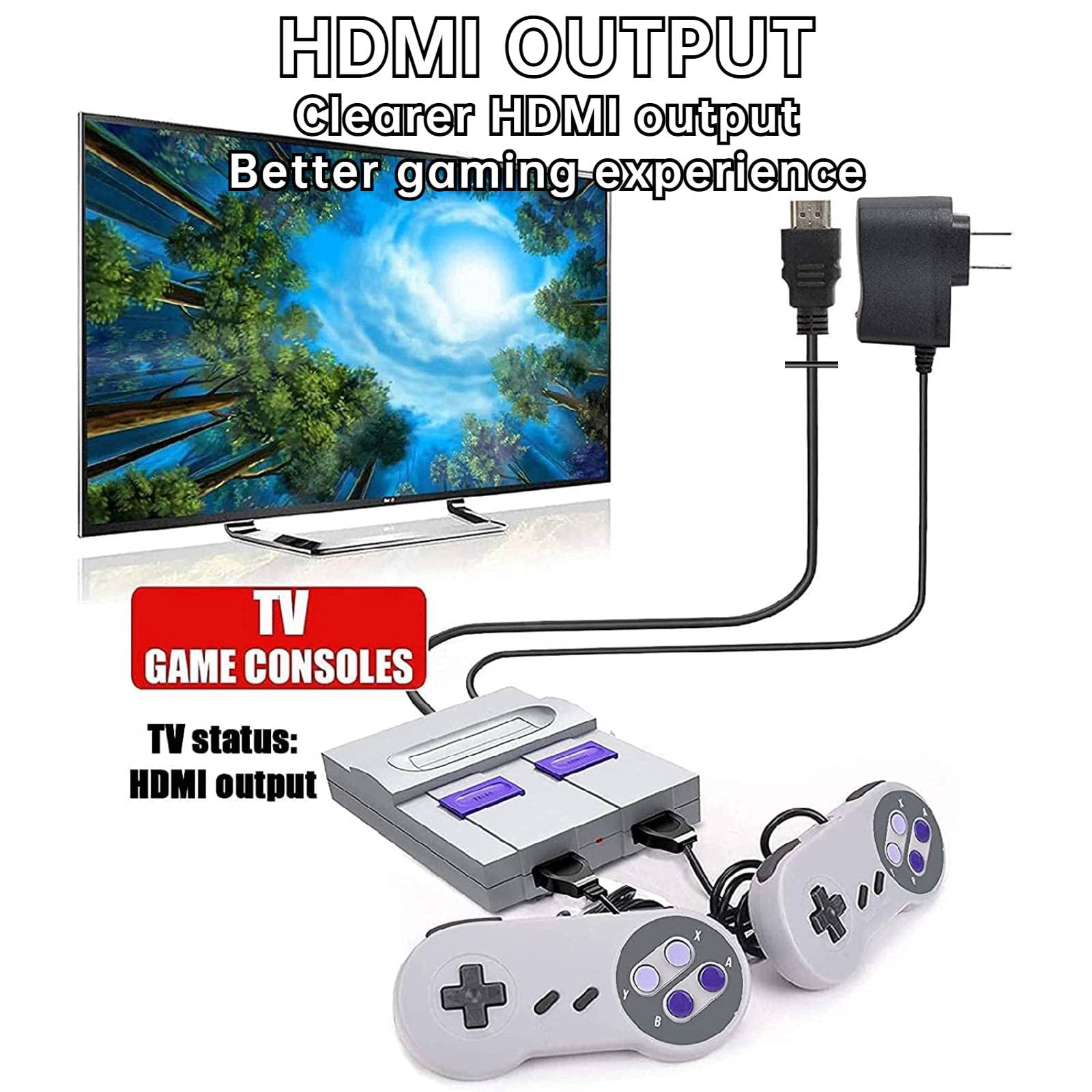 - 3.4K HD Output and Dual Wired Controllers: This classic mini game console comes with dual wired controllers,It is classic mini 8 and16 bit HDMI output game console,Just use the charger to connect the old video game console to the power source,then connect to the TV.Press u201cSECECT + STARTu201d at the same time for two seconds to start the retro game.plug and play.