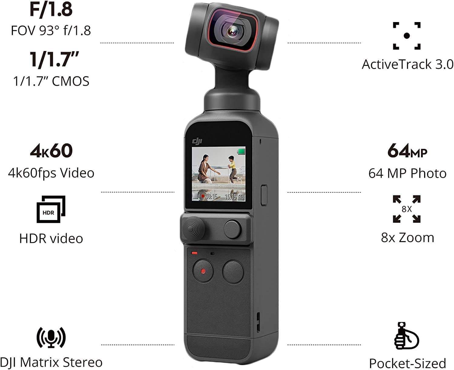 - GLAMOUR EFFECTS: Always share your best selfie with Glamour Effects. Boasting a 93° angle view, Pocket 2 allows for more flexible capture and perfectly-composed shots for social media.