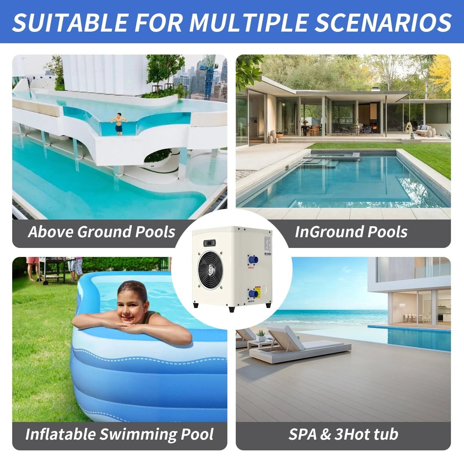 Docred Pool Heat Pumps, Heaters for Above Ground Pools 4000 Gal - White