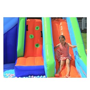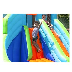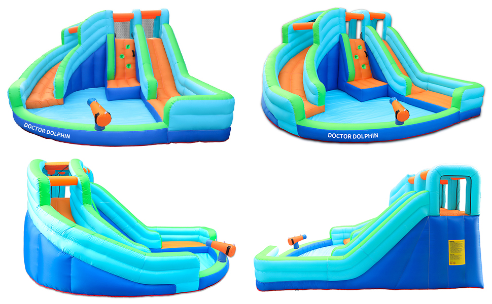 - [ Wet & Dry Bouncer ] :The waterslide can be used both outdoors and indoors, and the dual waterslide and water gun design keeps kids busy in the summer. Children can climb, slide and play with their favorite toys in this castle.