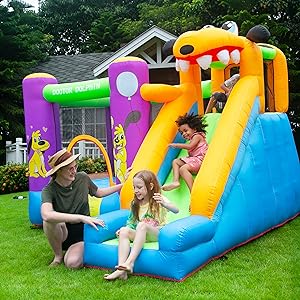 - Packing Include: The package comes with bounce house, 450W blower, patch, stake and portable handbag. Easy to inflate, deflate and carry out, which is very convenient.