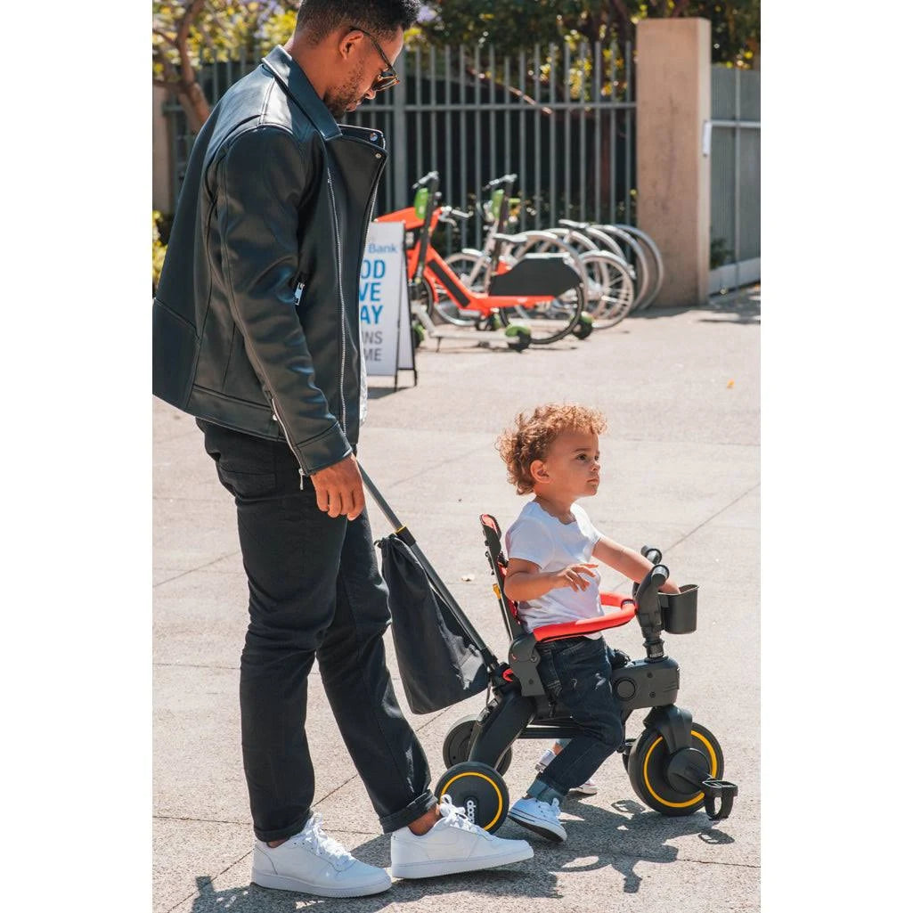 Let's roll with the world's most compact folding trike! The sleekurban design of the Liki Trike allows you to be safe and have fun as it elegantly combines functionality and aesthetics. With its unique and patented small-fold the ingenious trike simply folds and unfolds at the click of a button. Liki allows you to travel comfortably with your child as it fits easily in the boot of your car or the airplanes overhead bin.