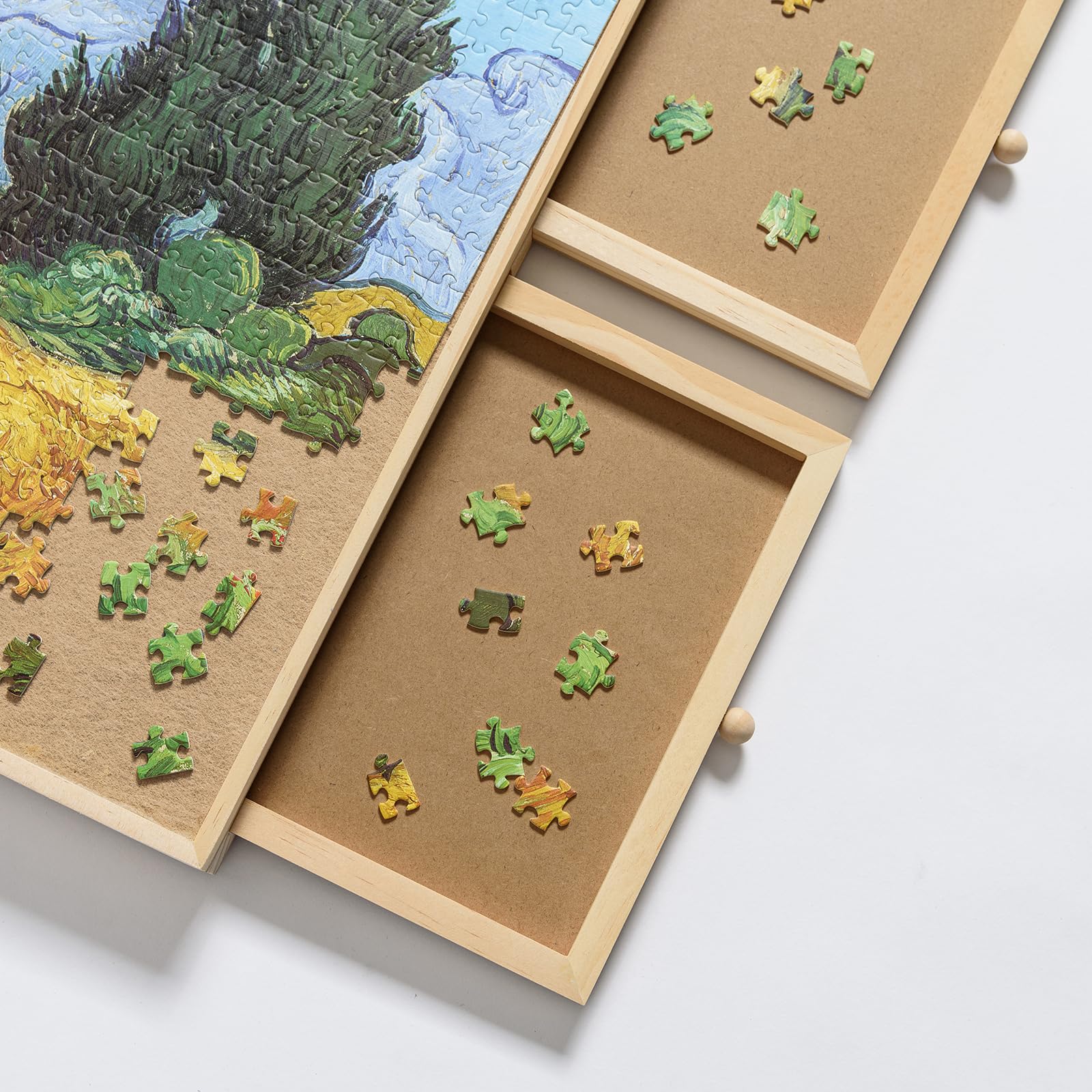 - The unique wooden puzzle table provides the perfect working space to sort, assemble and store unfinished puzzles until the next time!