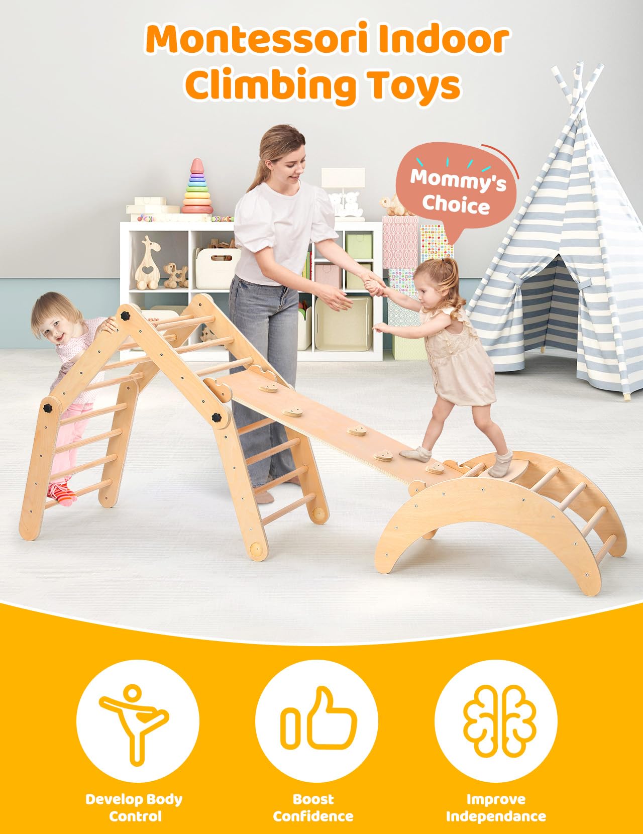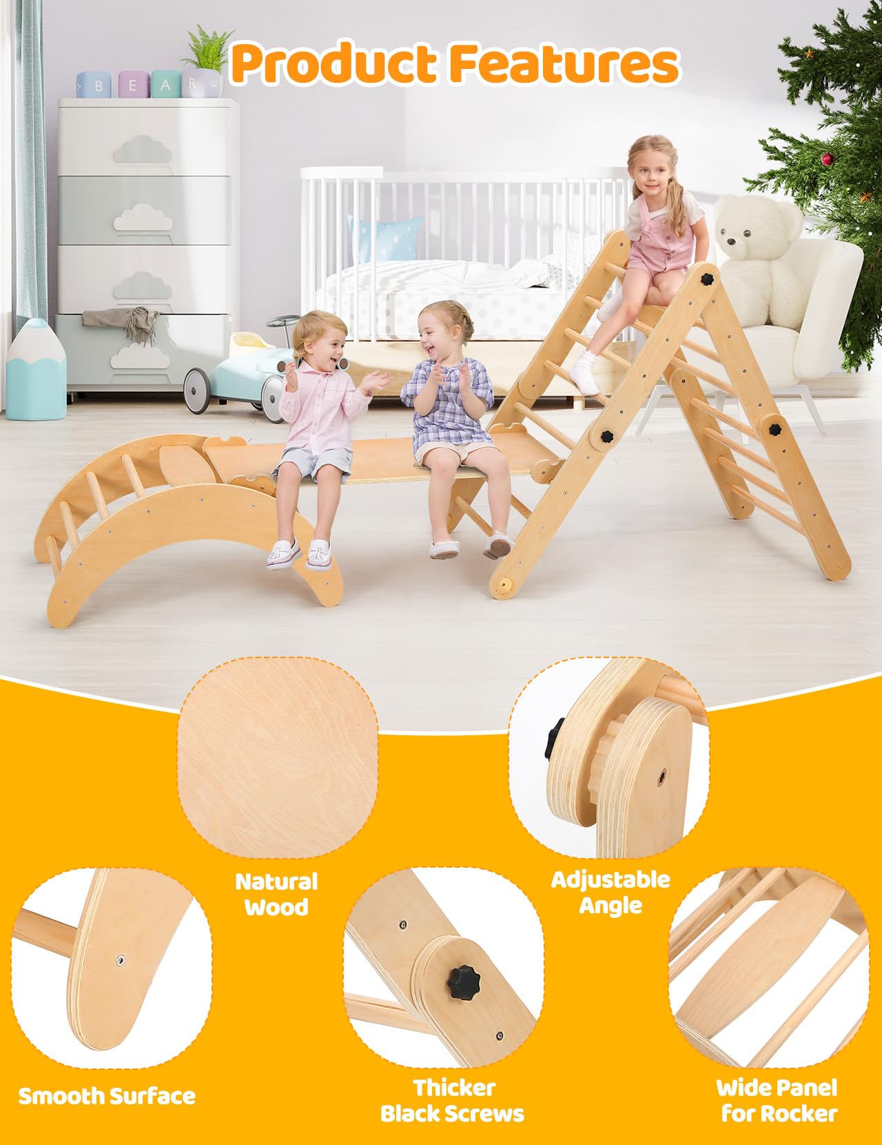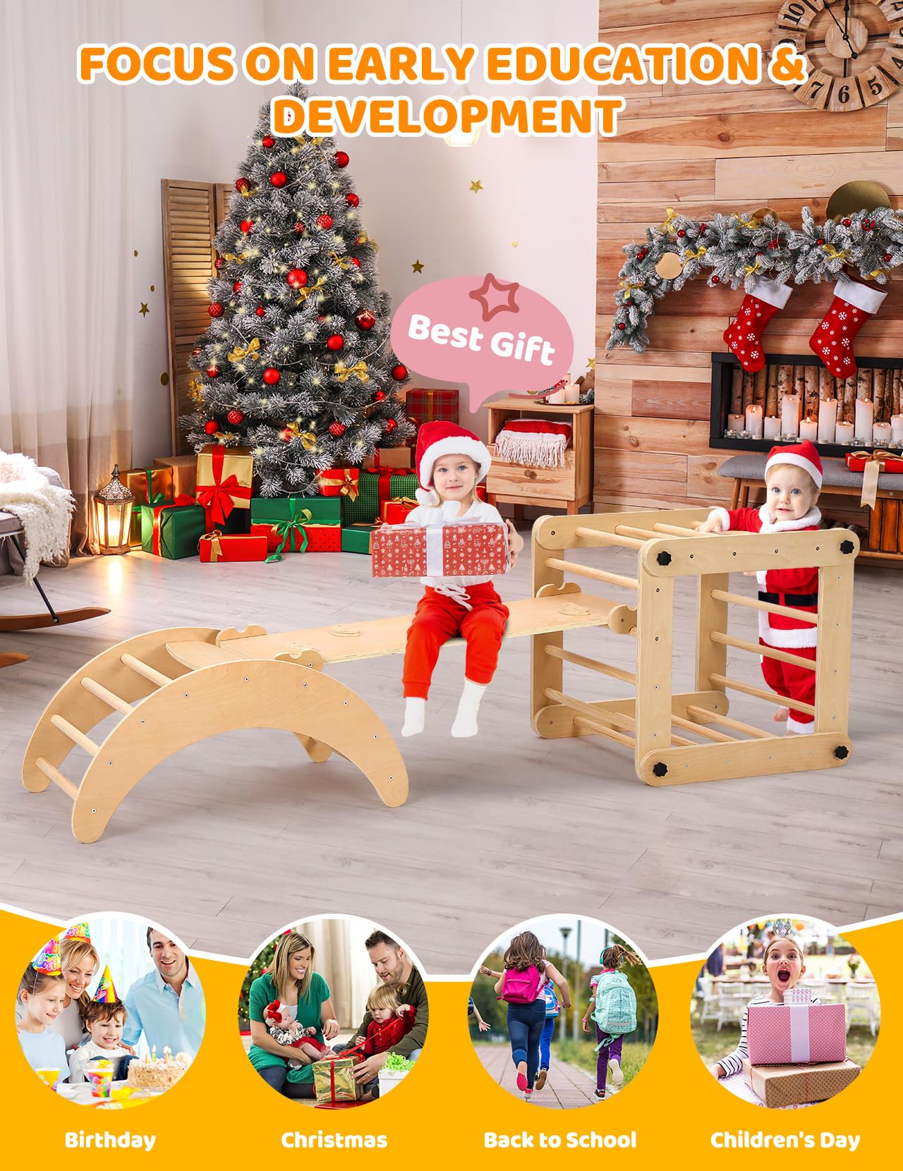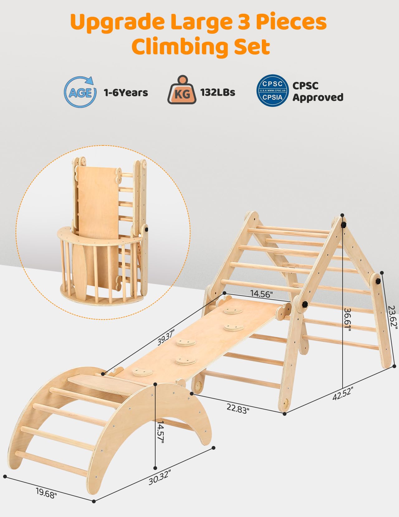 - ud83eudd47u3010100% Natural Material, Caring for Kidsu3011Made of 100% natural, safe, non-toxic wood and sanded to a smooth, edge-free finish after hundreds of polish, our montessori climbing set ensures maximum safety for children during play and growth. Recommended load 132lbs, ages 12 months to 6 years. In addition, it has been approved by the CPSC.