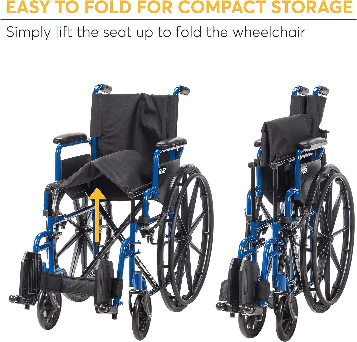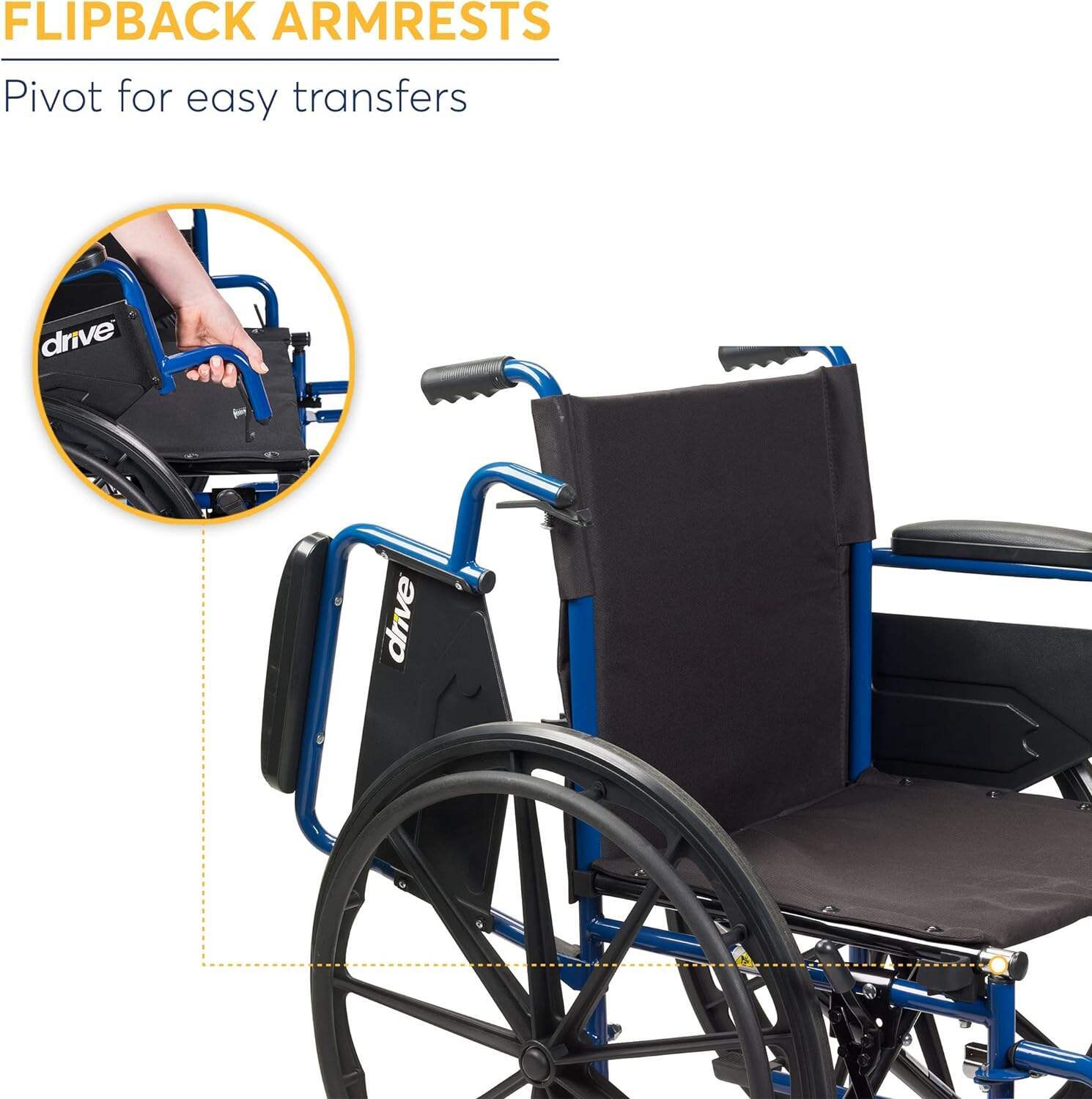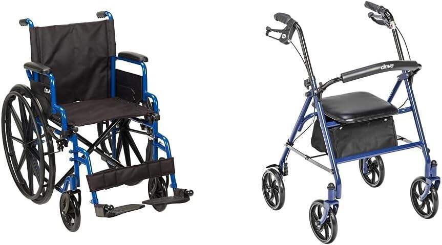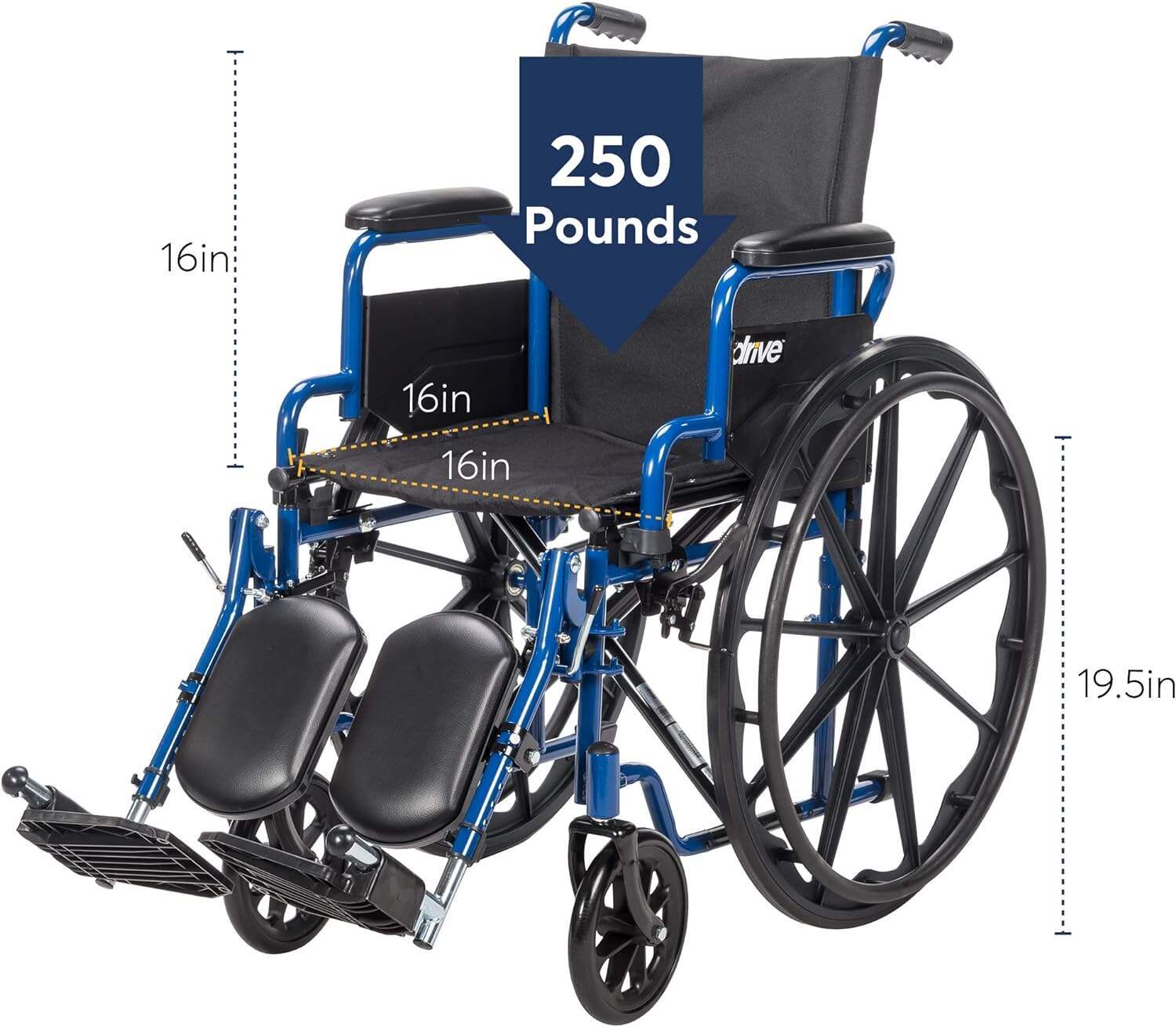 Drive Medical BLS18FBD-ELR Blue Streak Lightweight Wheelchair with Swing-Away Elevating Leg Rests and Flip-Back Arms