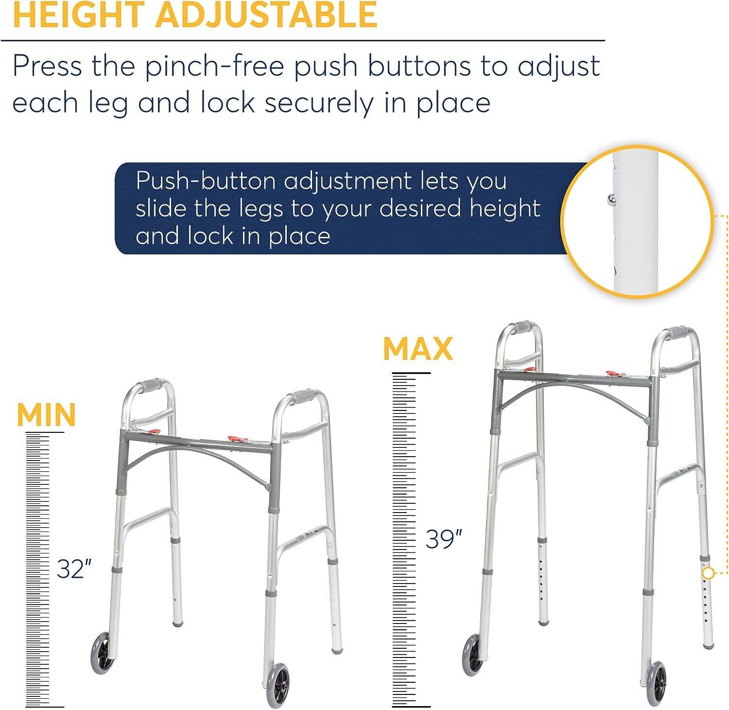 - Durable tires feature push-to-lock functionality for safety. Comes with calf strap