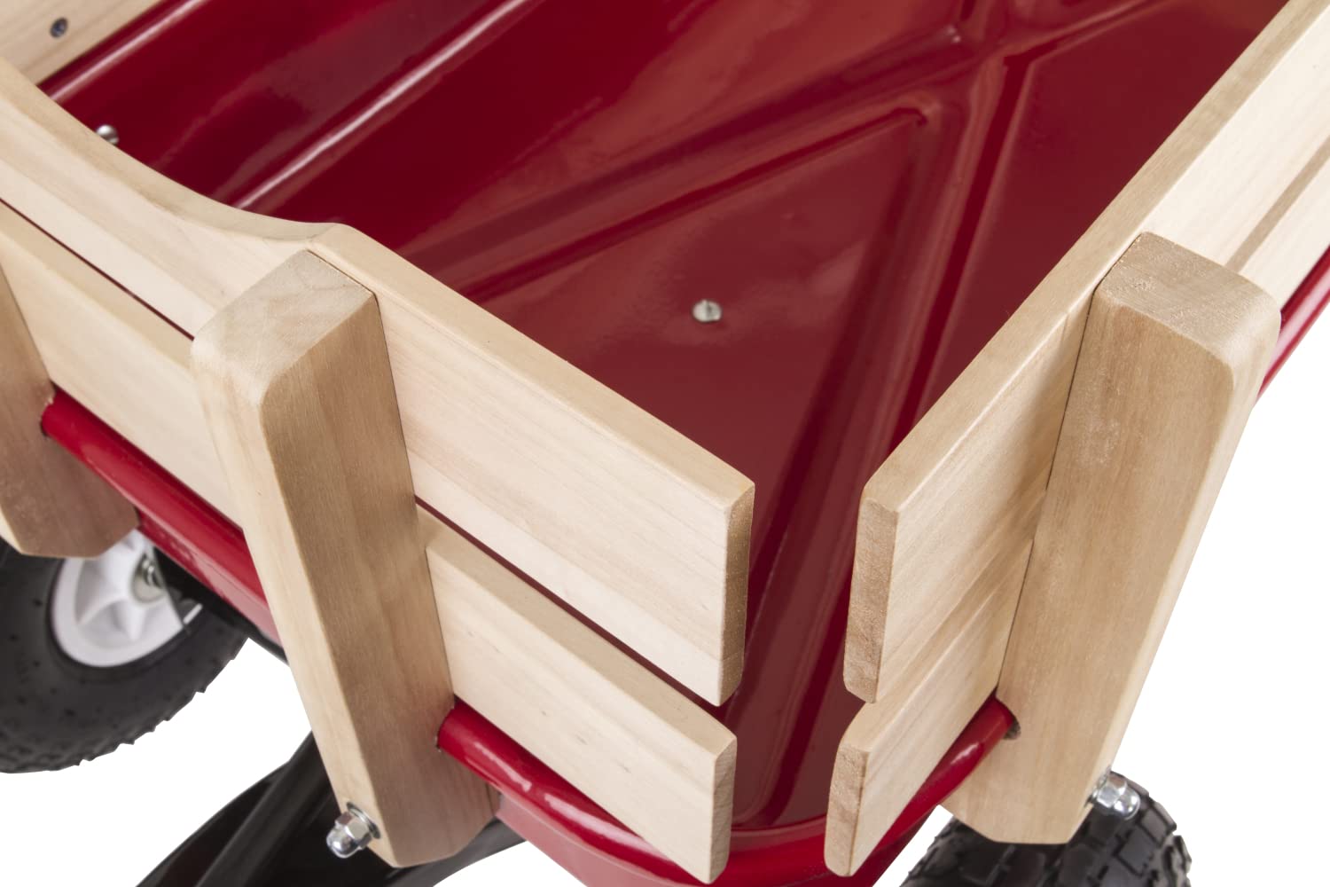 - MATERIALS: The kidsu2019 utility wagon is made from high-quality materials, eliminating the chances of wear and tear. The extra thick and beveled wooden panels ensure extra security on heavier loads.