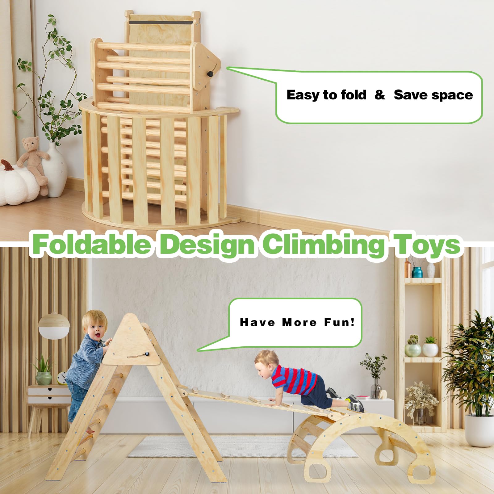 - [Foldable Designu3011 Climbing toys have a foldable design, when not needed, can be quickly folded up and placed in the corner or under the bed, will not take up too much space. The compact size and foldable design structure also makes it easy for parents to move it indoors or outdoors, or even put it in the trunk and take it out of the house.
