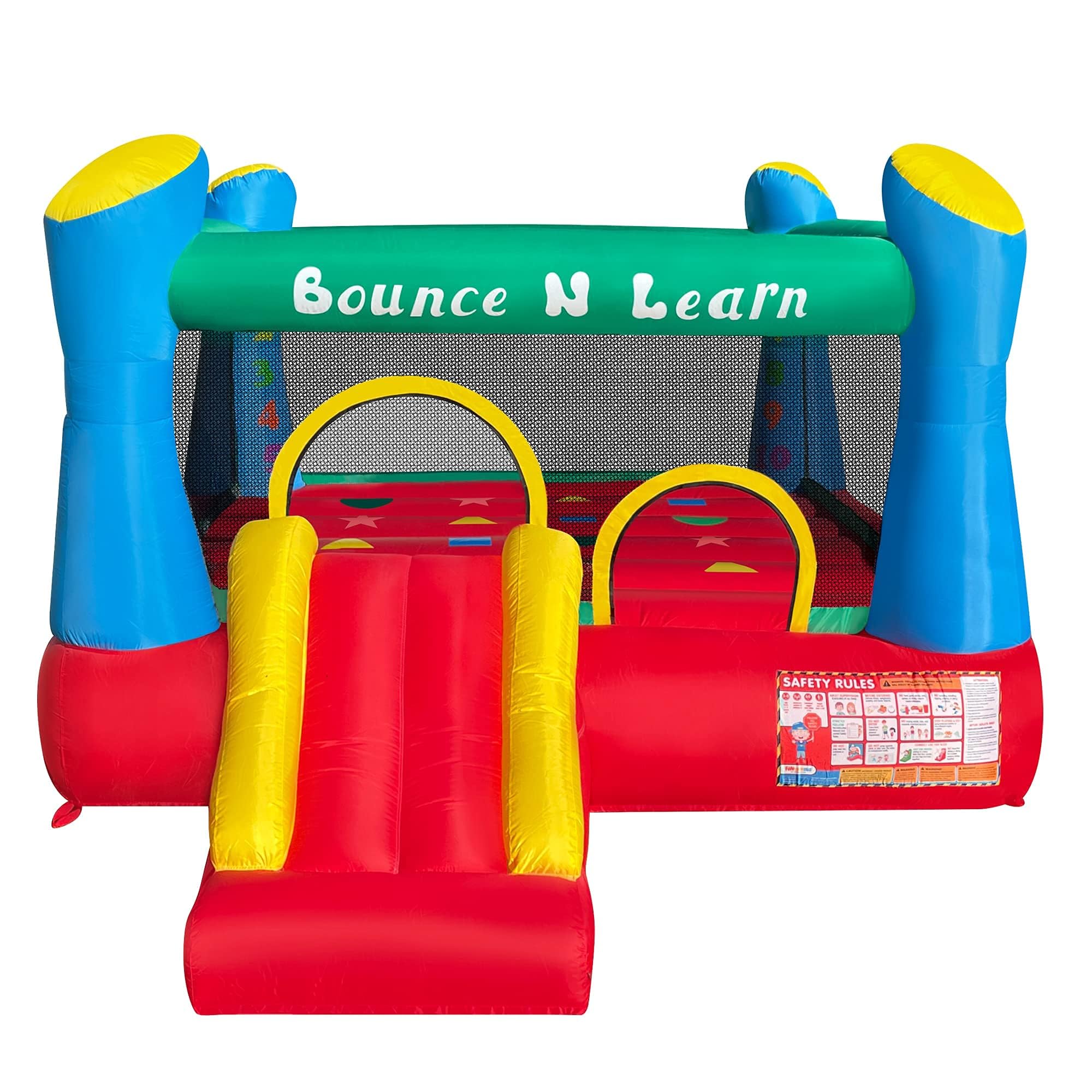 - EDUCATIONAL JUMP AND SLIDE - This playhouse features educational elements like the full Alphabet from A to Z, Numbers 1 to 10, and even Colors and Shapes on the bounce house jumping area. Your kids will love all the elements in this toddler bounce house as they jump and learn all day long.