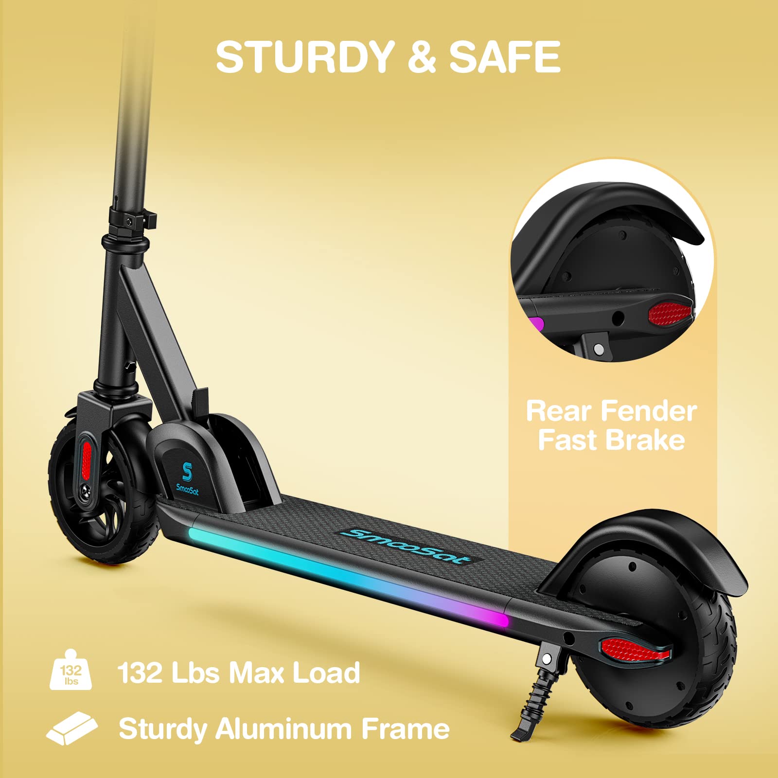 - ud835udde6ud835ude02ud835uddfdud835uddf2ud835uddff ud835udde6ud835uddeeud835uddf3ud835uddf2: For ultimate durability, the scooter adopts a sturdy and robust aluminum alloy frame, which is compression resistant with a long service life; the motor kicks in only when the speed reaches 3 MPH to prevent accidental starting, and the reinforced rubber anti-skid wheels and rear fender brakes provide safe and fast brake. It's the best electric scooter for kids ages 8-12.