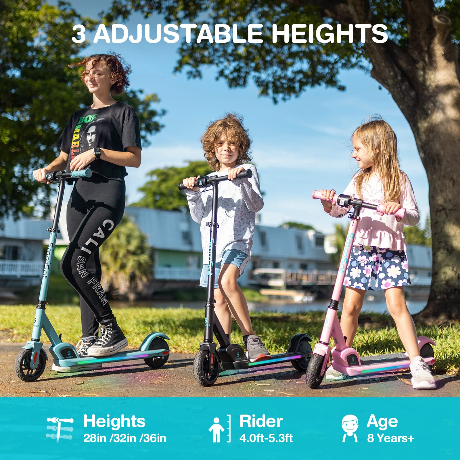 - ud835uddd4ud835uddf1ud835uddeeud835uddfdud835ude01ud835uddf6ud835ude03ud835uddf2 ud835udddbud835uddf2ud835uddf6ud835uddf4ud835uddf5ud835ude01 ud835uddfcud835uddfb ud835udfef ud835udddfud835uddf2ud835ude03ud835uddf2ud835uddf9ud835ude00: As your child grows, the electric scooter evolves with the young rider. The handlebar height can be adjusted to 28 in/32 in/36 in according to your child's height, the design is suitable for 4.0~5.3 feet height, age 8+, weight Children under 132 lbs (60 KG).