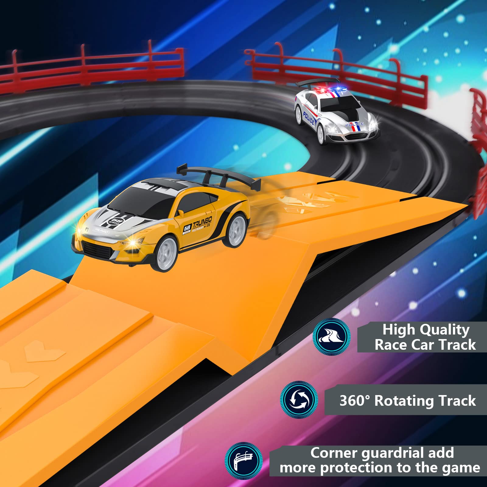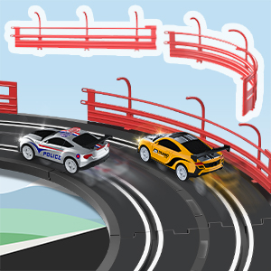 - Tips for staying on track and enjoy the fun of racing: This slot car track needs you to handle the skills to keep the car on the track. You need to slow down the car like a normal car around a corner, otherwise, they will fly away. As you master the art of keeping the car on track, you'll find that your competitor will never catch up. We made the cars and tracks to make things easier. Enhanced magnetism and a sturdy car make it easier to keep track and fit for kids.