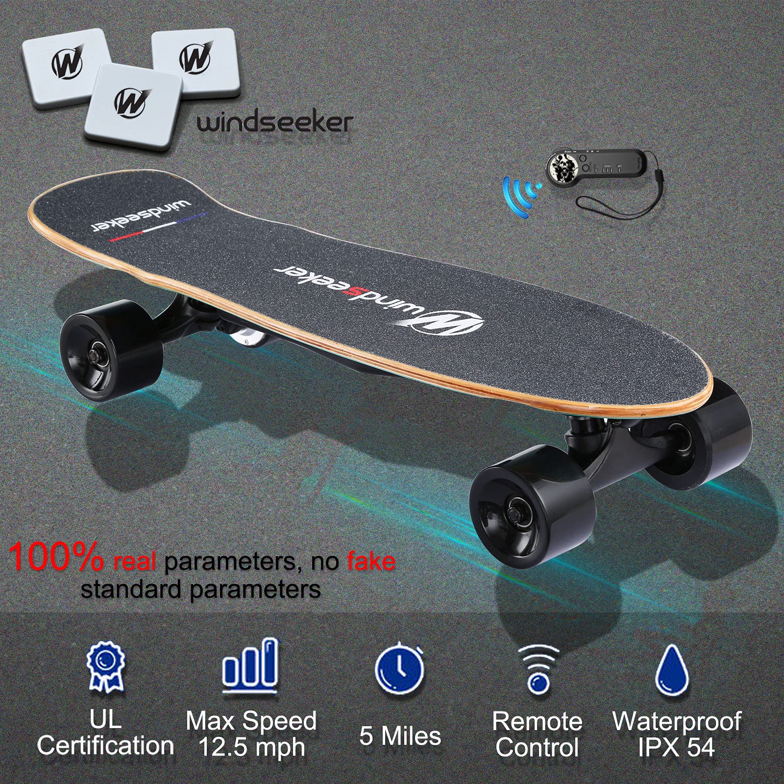 - ud83dudef9u3010UL CERTIFICATION & DIY STICKERSu3011UL certification 2272:2016, 6-Months Warrantyuff0cNo worry to buyuff01u25b6 H2S-2 e-skateboard is an excellent gift for childrenuff0cteenagers or adults on Christmas or birthday. u25b6 WINDSEEKER provides brand-specific custom stickers, including various element patterns, which can be pasted in the circle on the top of the remote control, add more joy to your life.