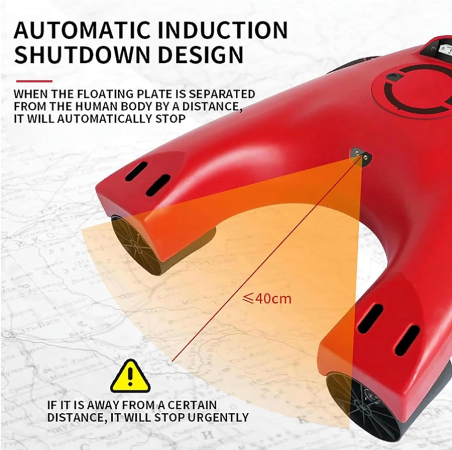 - 4/: The electric surfboard can automatically sense human presence within 40cm range, making it easy to control and convenient to use.