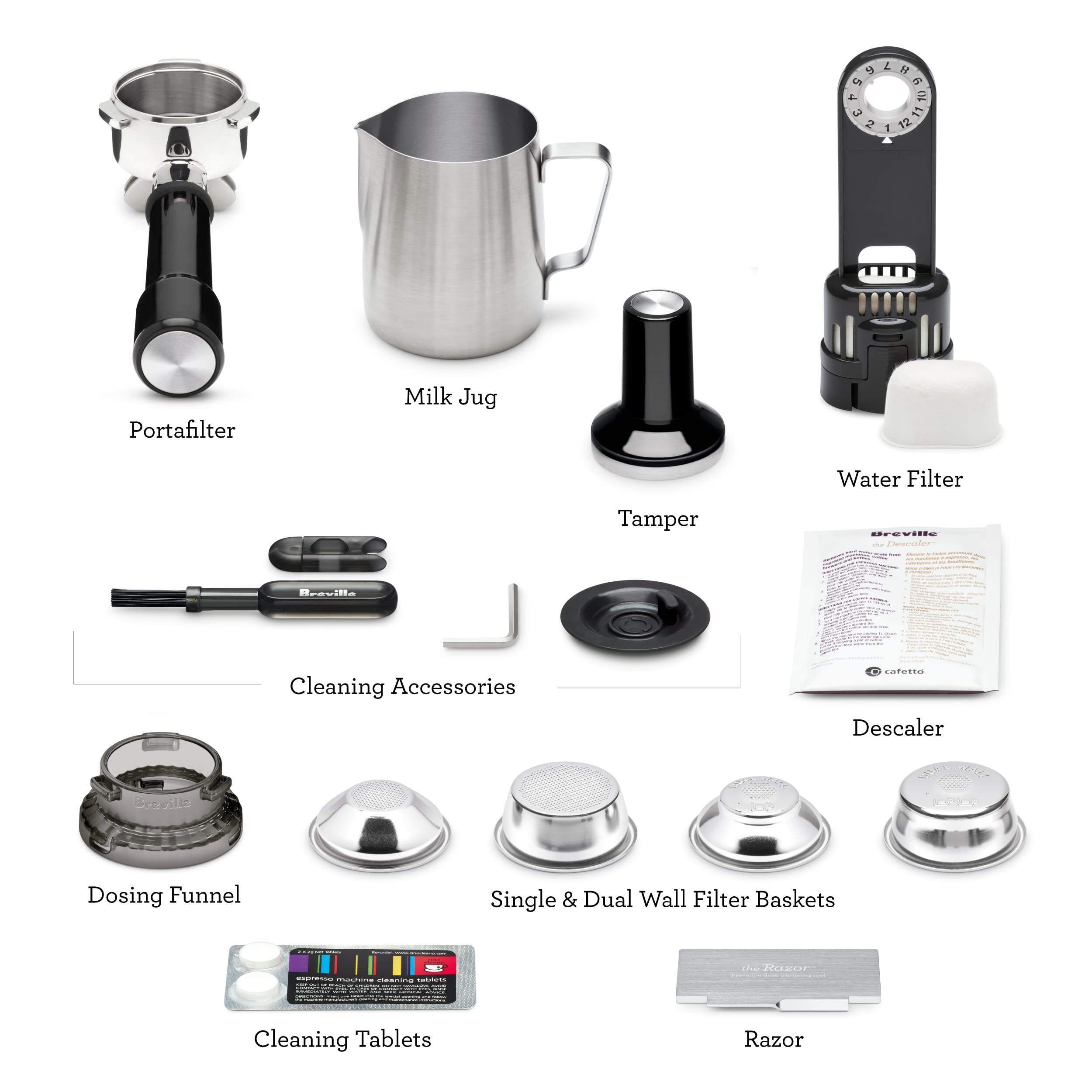 The in-built conical burr grinder allows you to grind only what you need directly into the portafilter. It's fully adjustable in grind size and dose, so you can tweak to taste.