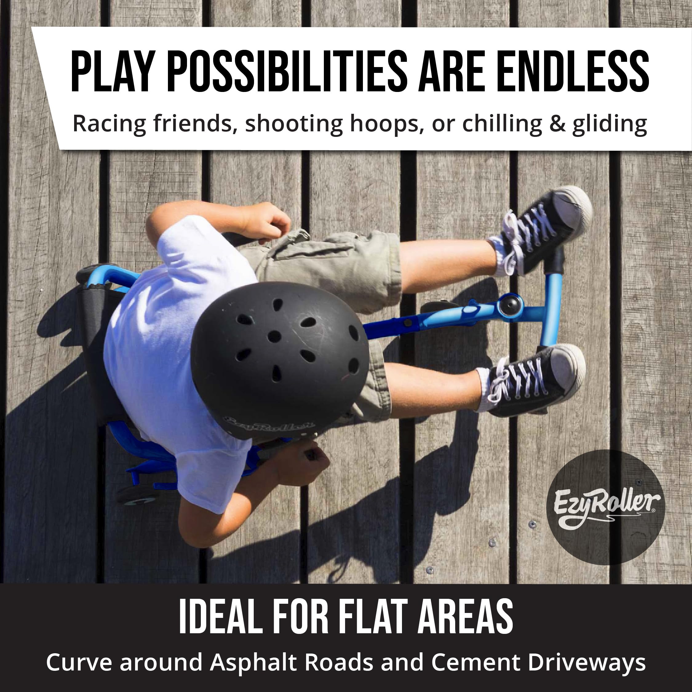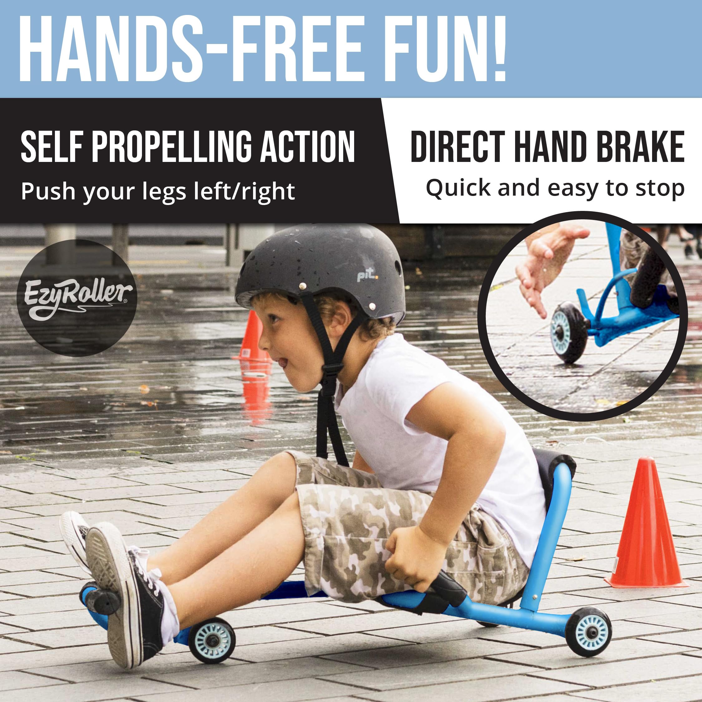 - HANDS FREE: Kids who cycle or scoot have to keep their hands on the handlebars while kids who ride around on an EzyRoller have their hands free to chuck balls or play other games.