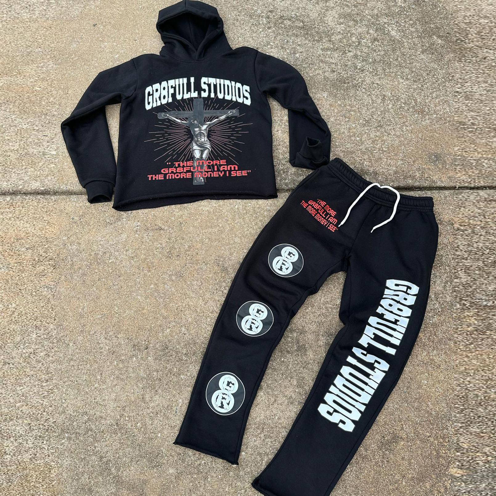 • Fashionable personalized printed irregular hem hoodie set