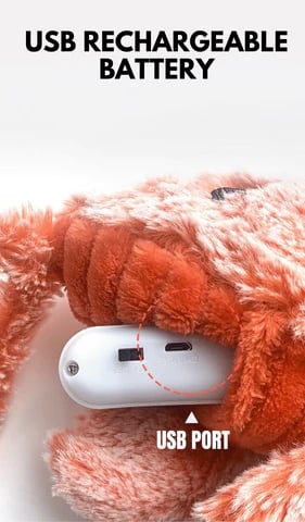 The lobster toy will adjust its flopping speed according to the motion around it. If it detects that it's being played with, it'll flop faster. If it detects no motion, it'll slow down and eventually stop.