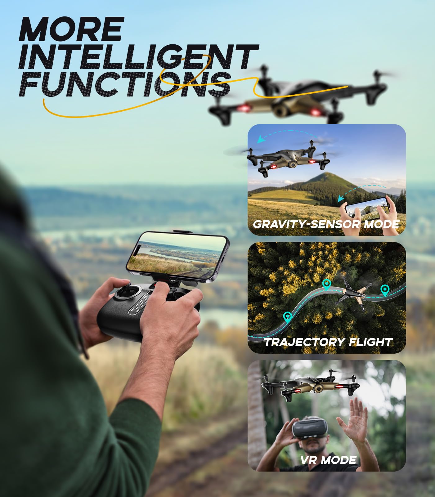 - User Friendly: Headless Mode, Altitude Mode and One Key to Take-off / Land function make easier access to kids or beginners, adapts to all experience levels even for kids and beginners. This remote control drone with camera is an ideal gift for your child or friend.