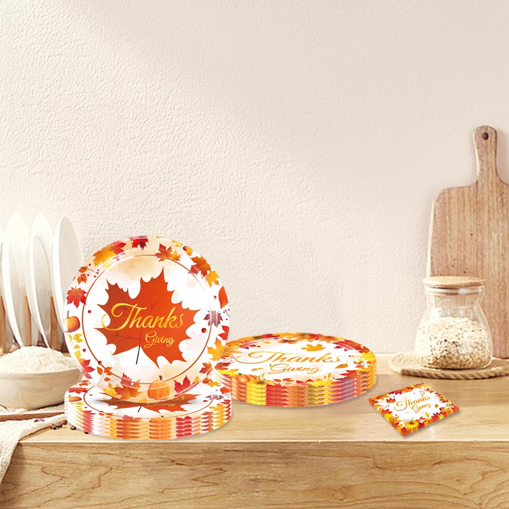 - Package includes: 24 pcs Fall Leaves plate and 24pcs Fall Leaves paper towel for the Thanksgiving Day party