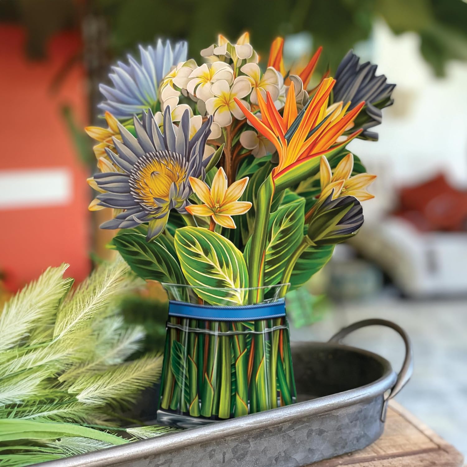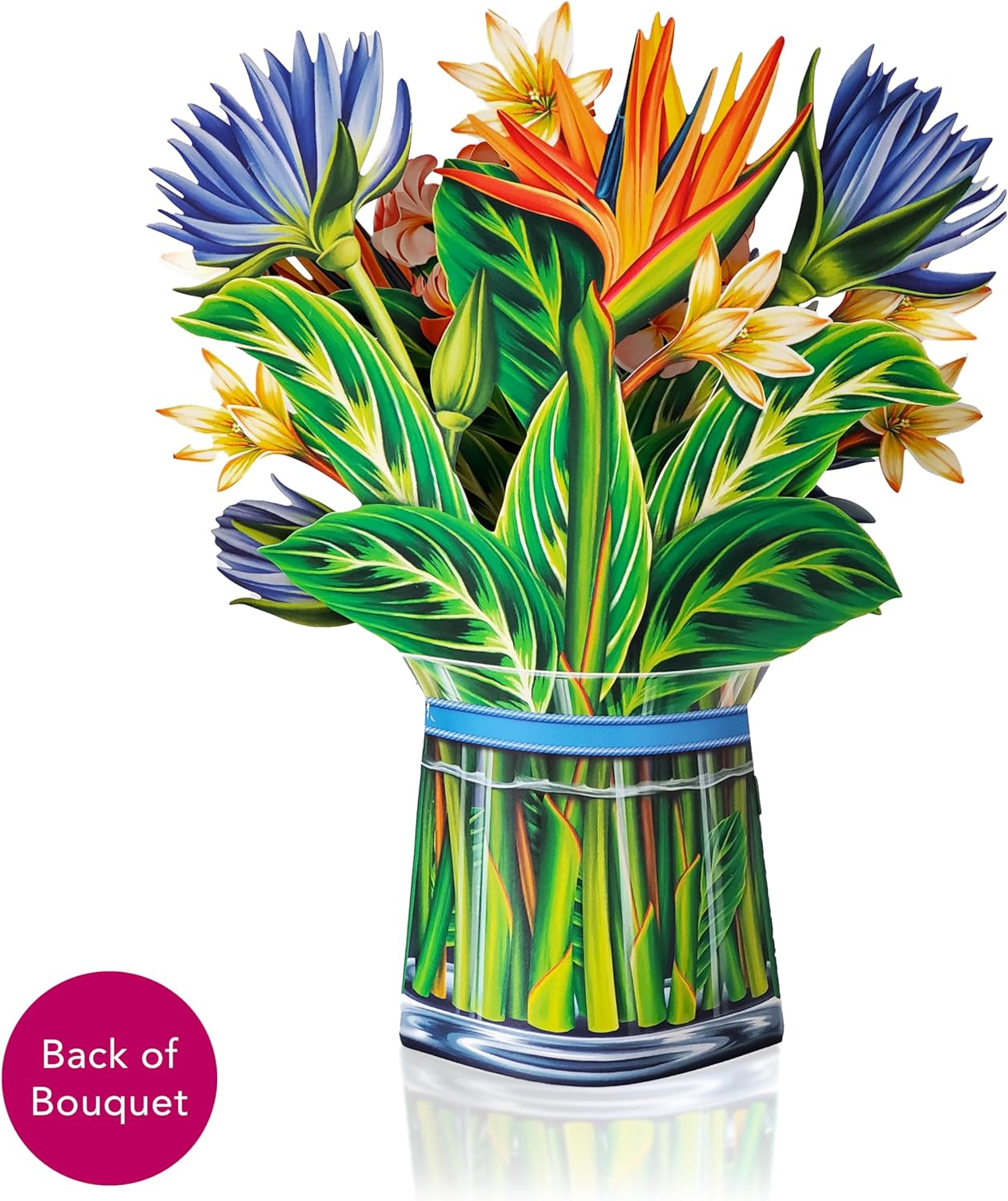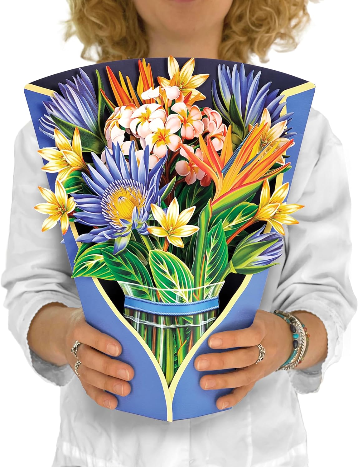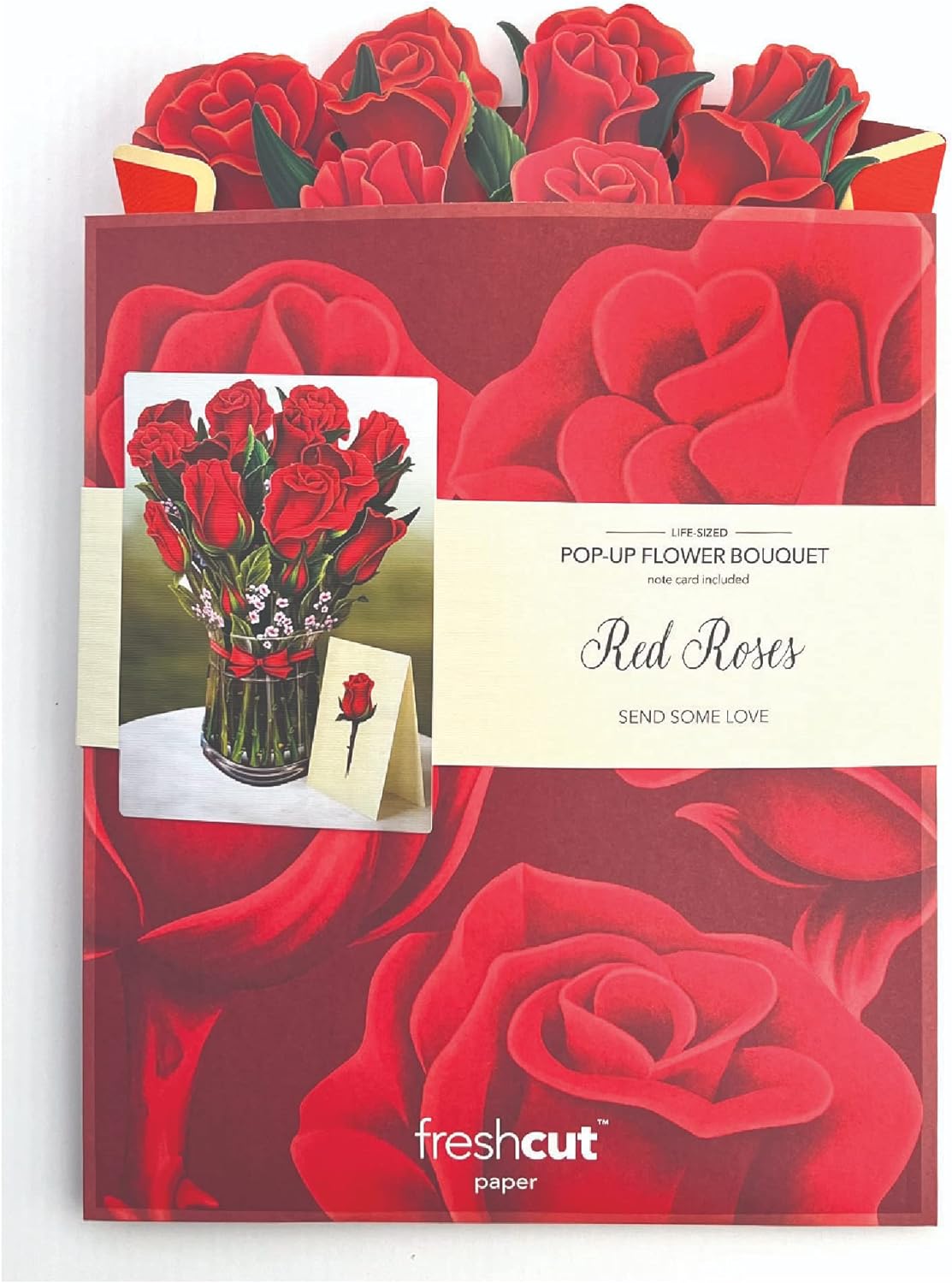 - LARGE POP UP CARDS stand 12 inches tall and 9 inches wide on their own or in in the supplied paper vase. A blank notecard is included for your custom gift message, and an envelope ready to mail flat anywhere in the USA.