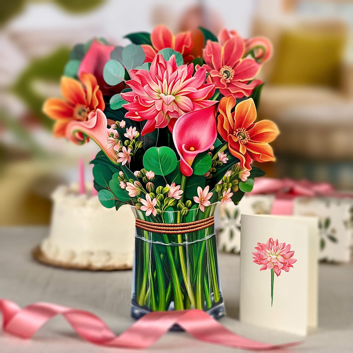 Freshcut Paper Pop Up Cards, Dear Dahlia, 12 Inch Life Sized Forever Flower Bouquet 3D Popup Greeting Cards, Mother's Day Gifts, Birthday Gift Cards, Gifts for Her with Note Card & Envelope