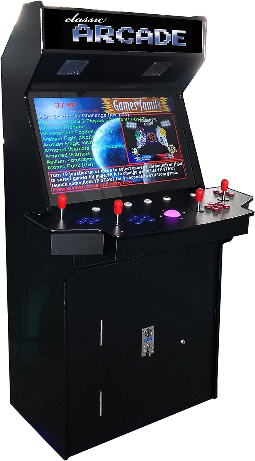 Full Size Commercial Grade Upright Standup Arcade Machine 4 Player 4600 Classic Games 32 inch Screen Black