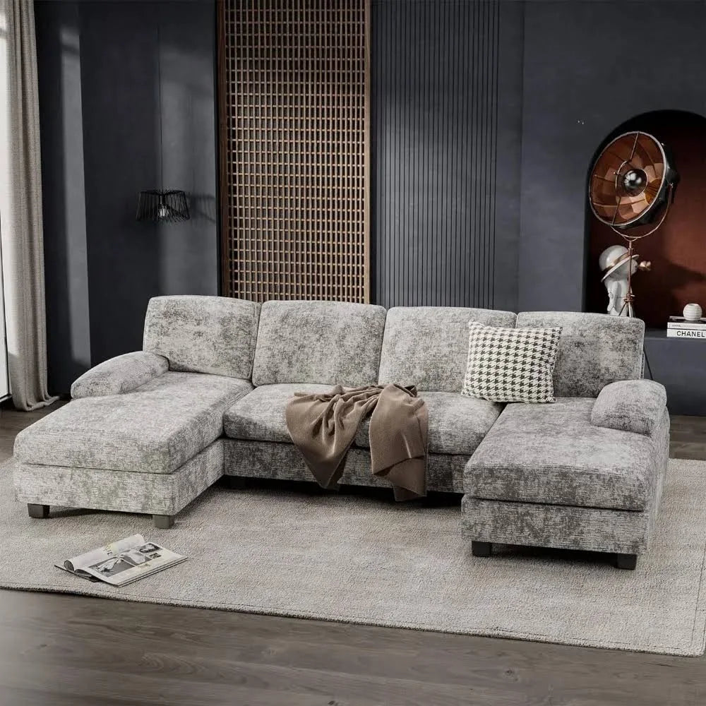 Furniwell Convertible Sectional Sofa Couch, 4 Seat Sofa Set for Living Room U-Shaped Modern Fabric Modular Sofa Sleeper with Dou