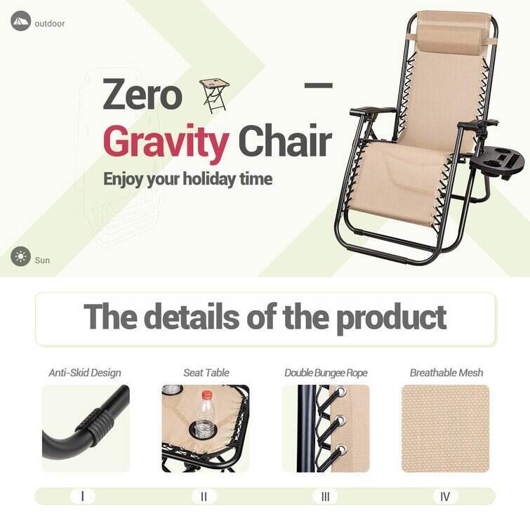• Gavyn Reclining/Folding Zero Gravity Chair with Cushion