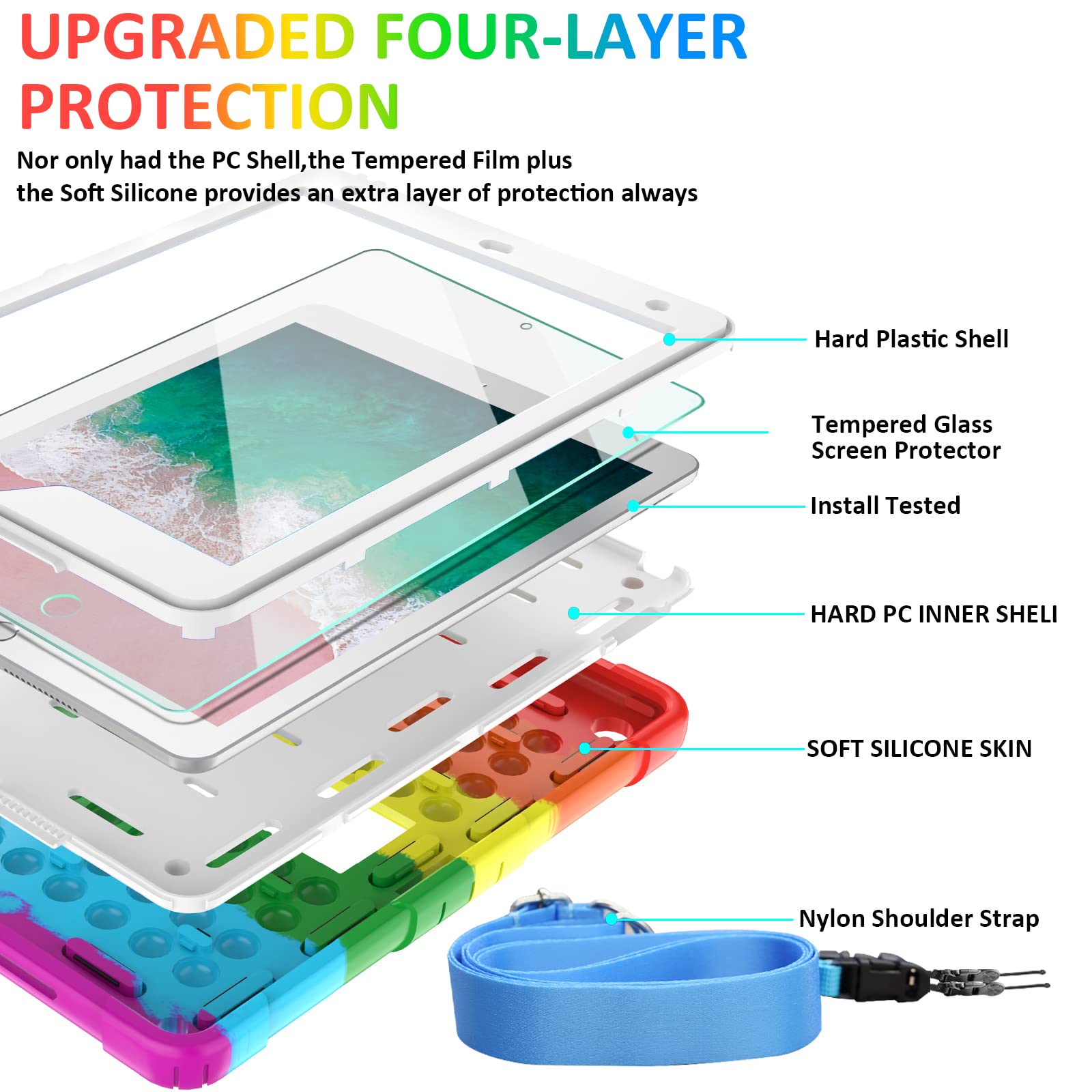 - ud83cudf3bu30104 Layer Designu3011Flexible outer silicone with hard PC inner shell and top PC frame provide the max protection for iPad 9.7 inch 5th/6th Generation 2018/2017/Air 2/iPad Pro.The outer silicone is quite thick and soft, it can absorb the impact from accident drop or shock.