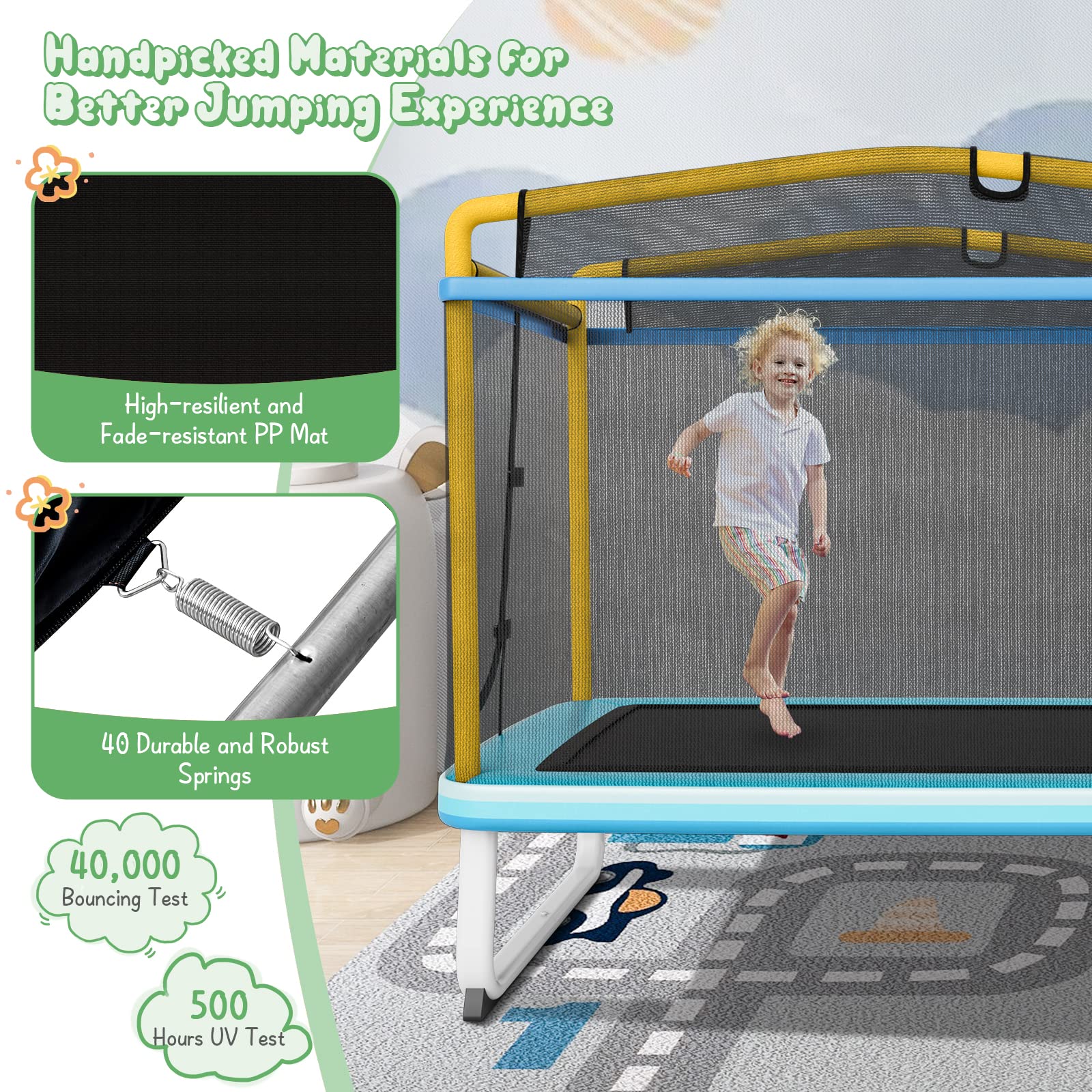 - [ U-shaped Legs Add to Steadiness ]: Giantex rectangle trampoline is built for sturdiness. Supported by heavy-duty galvanized metal pipes that are rustproof, the kids trampoline with safety net shows excellent stability. More importantly, the unique U-shaped legs with triangular non-slip foot pads add to steadiness.