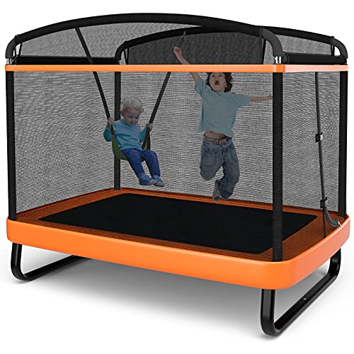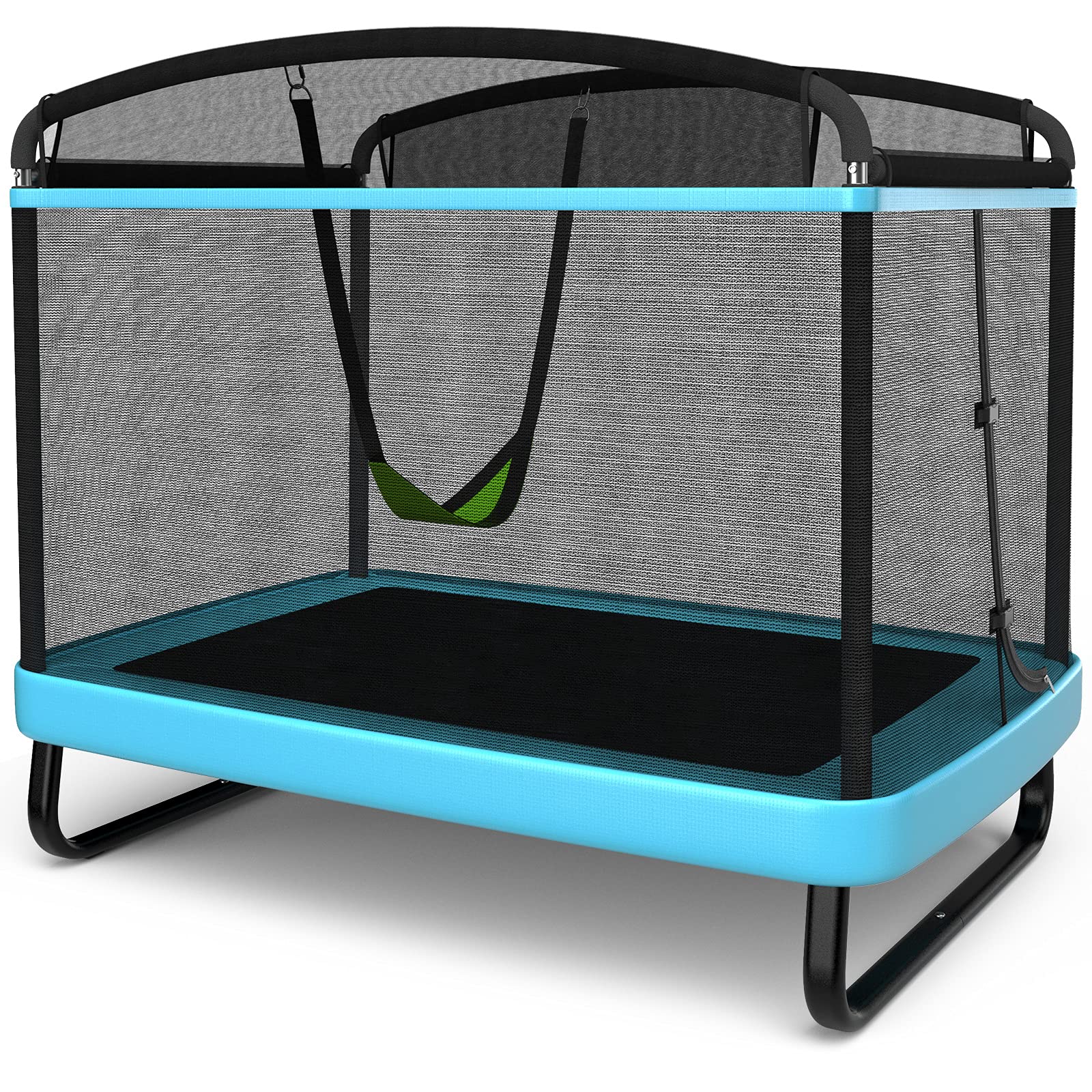 - ud83cudf85 Perfect Gift for Kid: This rectangle trampoline with swing brings endless fun for your adorable child. And you can put it wherever, such as backyard, garden and other places, enjoying a happy family time together.
