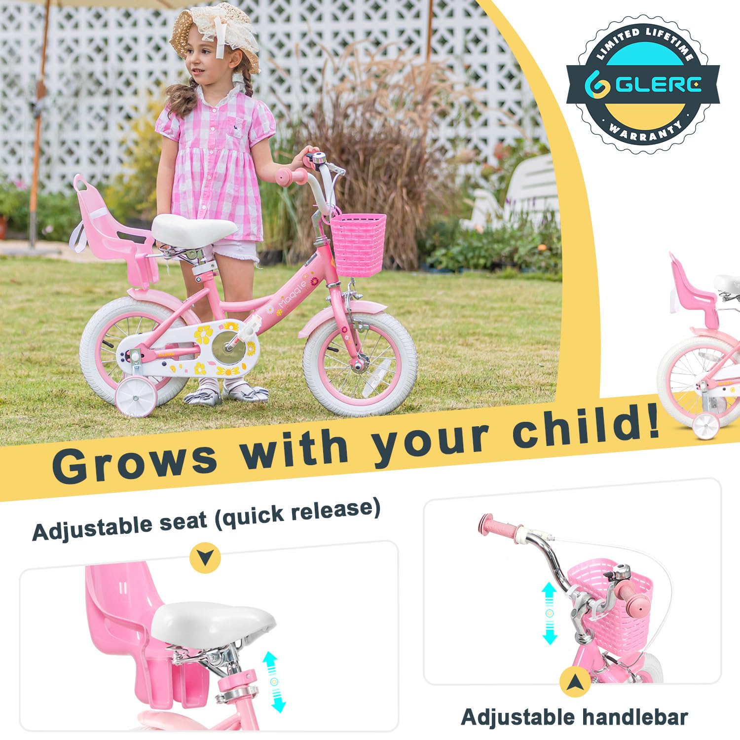- u3010PLEASE CHECK THE SIZEu3011 Glerc is committed to offering good Post-Sale service. CHOOSING the right size for your girl is the key to whether she can explore the colorful world smoothly by riding. What we recommend you can find in the picture display cabinet or the chart at the bottom. Don't forget to choose from multiple colors to get her perfect one. If you have any problem, always contact us for help.