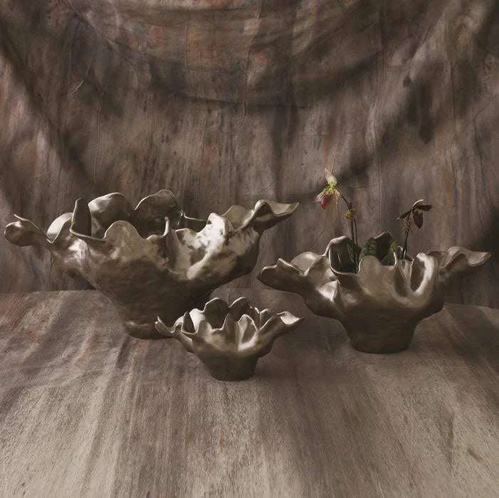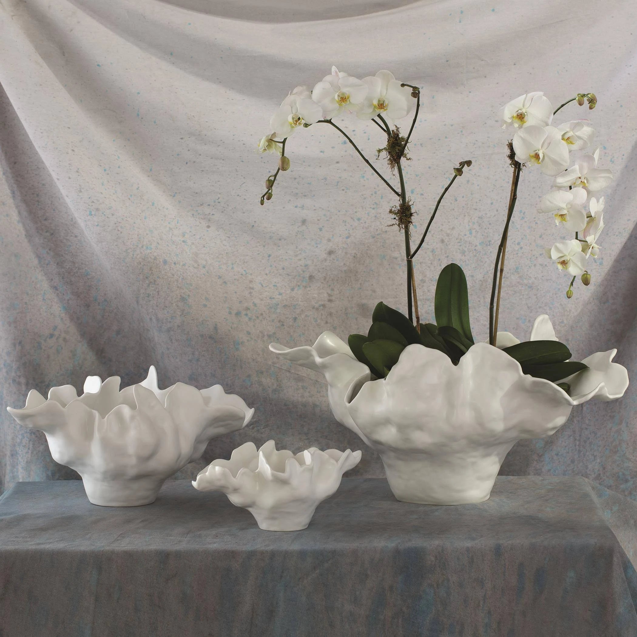 The original of this grand statement piece was created by a Portuguese artist whose work first caught our designers' eyes at an art fair in Portugal. It took years of collaboration to arrive at this design that can be consistently produced Multiple pieces are cast, bound together, and fired. Then it receives a reactive glaze and is fired a second time. There is a tremendous amount of artisan work that goes into every piece.