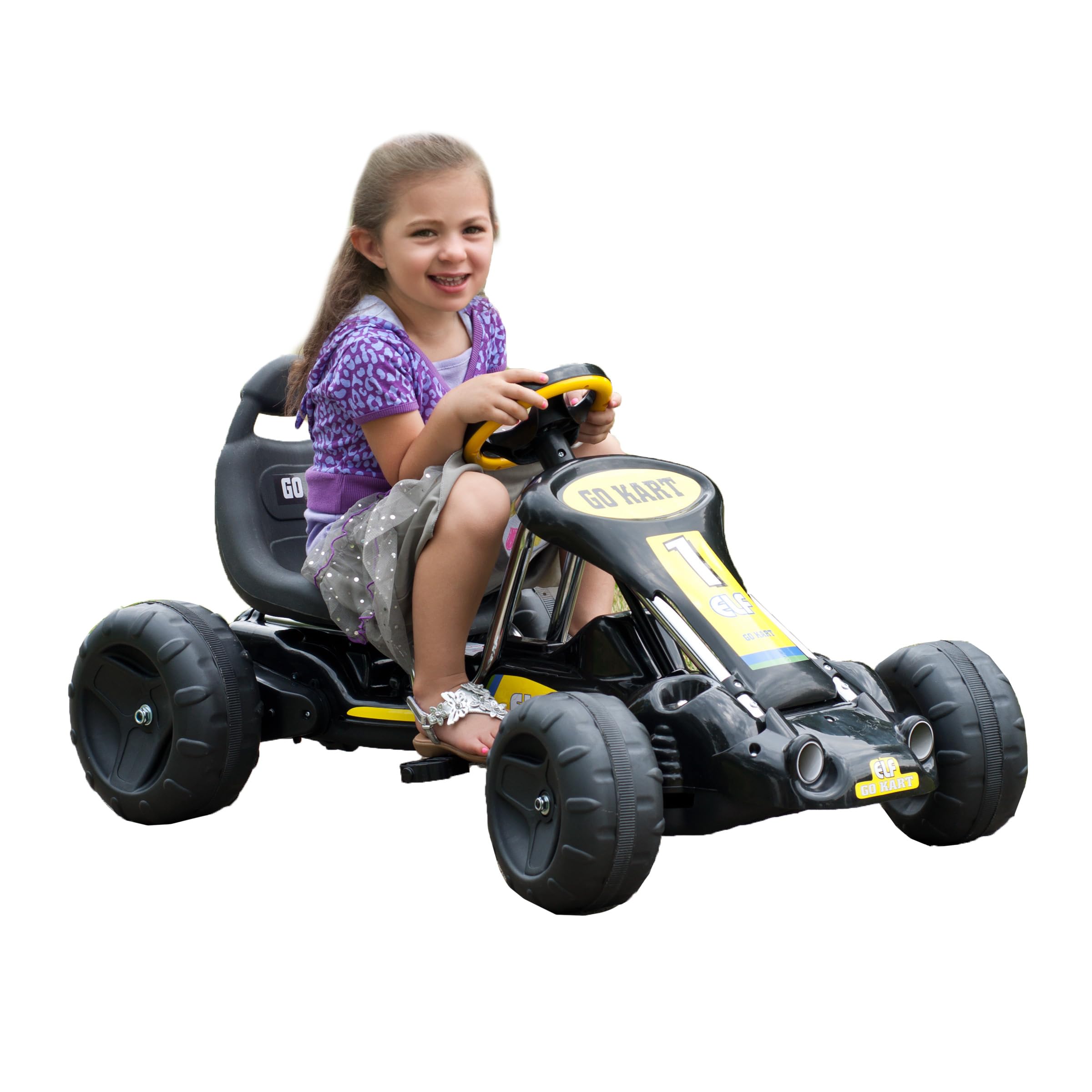 - PEDAL GO KART - Satisfy your child's need for imaginative play with this kidu2019s go kart. Perfect for both indoor and outdoor use, this toddler car works on any hard, flat surface and has a compact, lightweight design for easy transport.