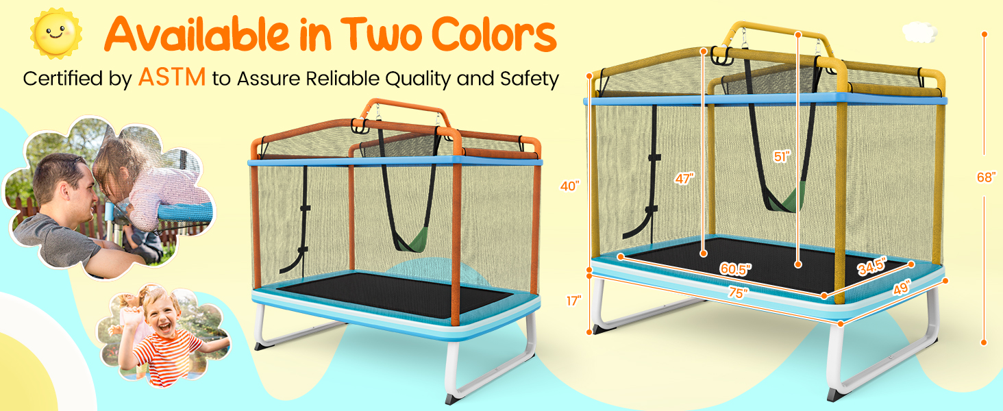• u3010Better Space Useu3011This unique rectangular trampoline (75" x 49") is designed to provide larger jumping area while take up less space, perfect for small space, like apartments or condos. Meanwhile, this toddler trampoline is also suitable for outdoor, and you can make your backyard a private jumping theme park.