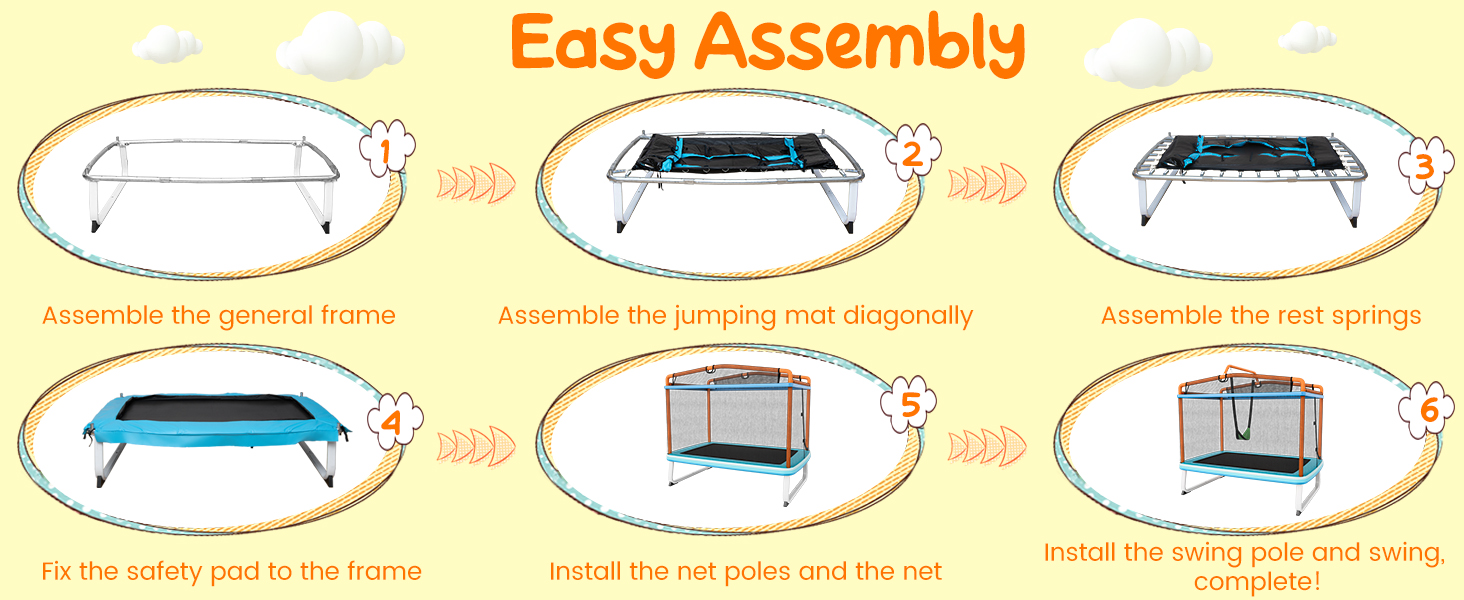 • u3010Easy Assemblyu3011Set up this mini trampoline with mainly 6 steps, and all accessories and tools needed are included.