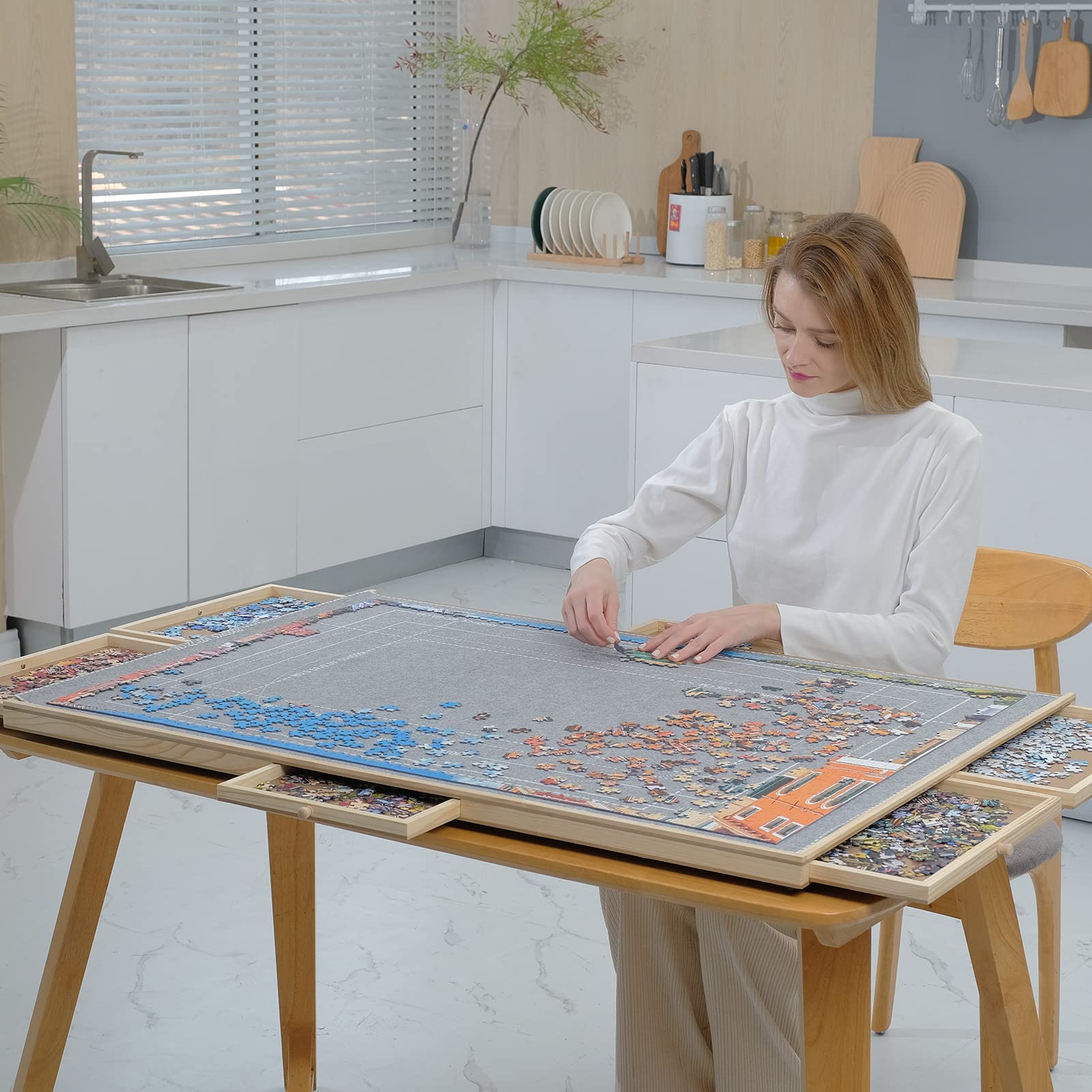 - ud83eudde9u3010Large Puzzle Board & Better Compatibilityu3011 The puzzle board 2000 Piece working area measures 41 by 30 inches, and The wooden puzzle board comes with a gauge blanket that meets the requirements of various jigsaw puzzle specifications. It is also compatible with jigsaw puzzle table that can accommodate 1000-2000 pieces