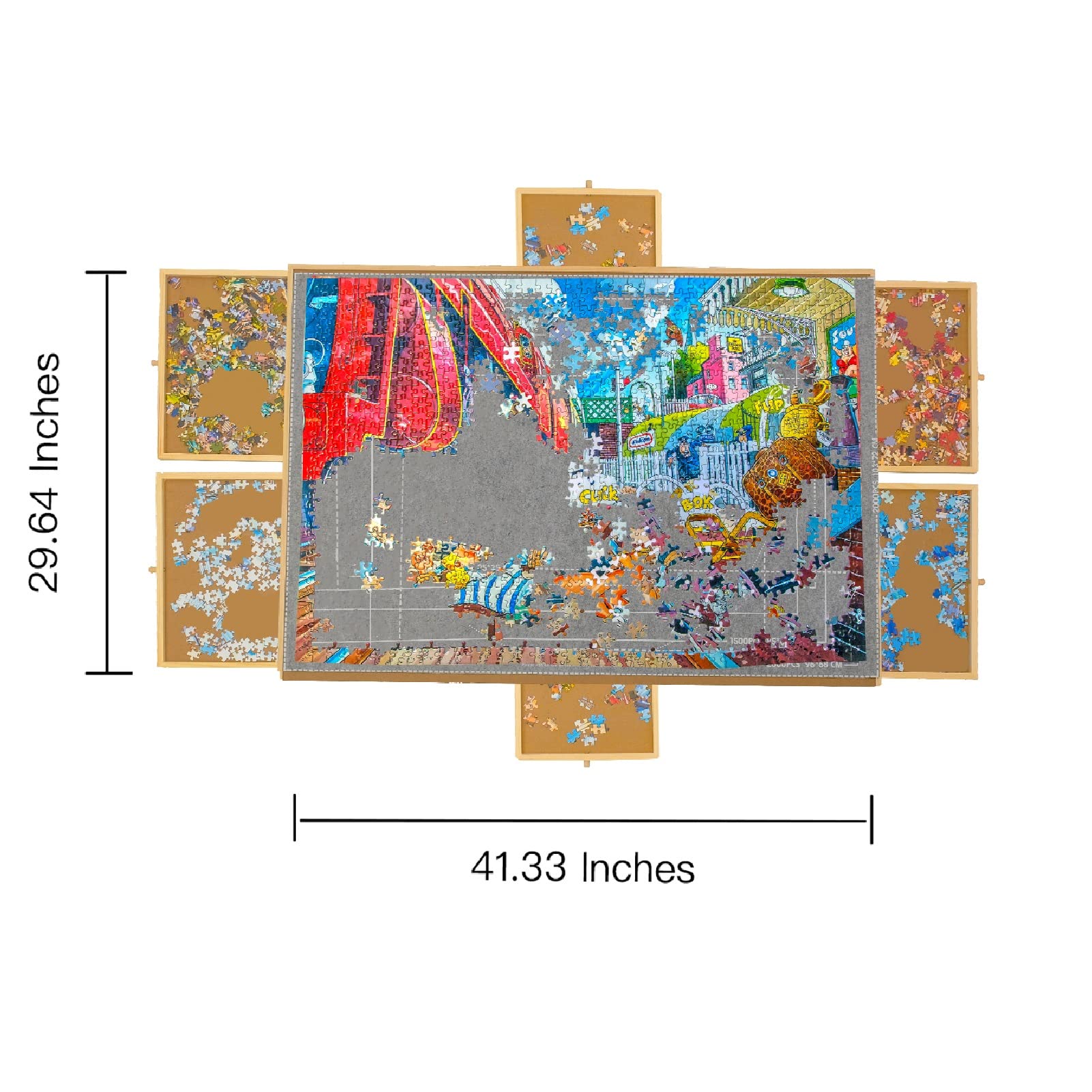 - ud83eudde9u3010Convenient Designu3011More convenient and quick. Puzzle board with drawers and a cover, you can easily rotate the puzzle board and keep your puzzle pieces organized. Our puzzle board features six drawers that allow you to separate puzzles, making it easier and more efficient to play. Say goodbye to the hassle of disorganized puzzle pieces and hello to a more enjoyable puzzle experience with our puzzle board.