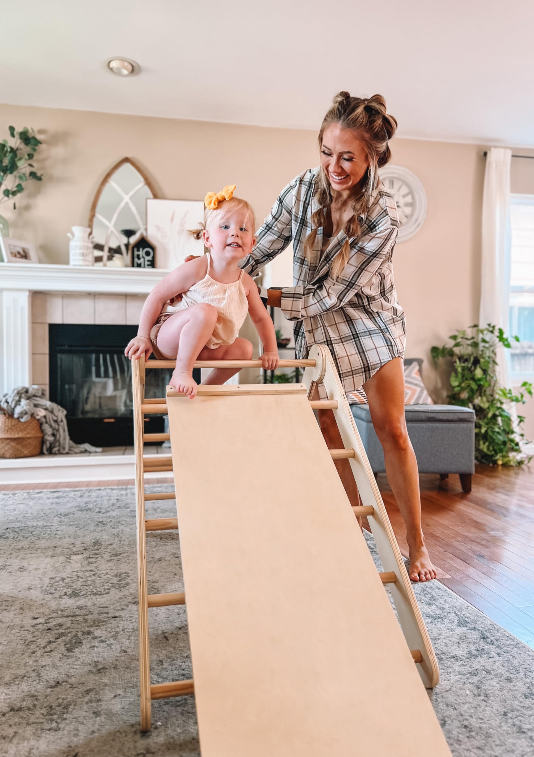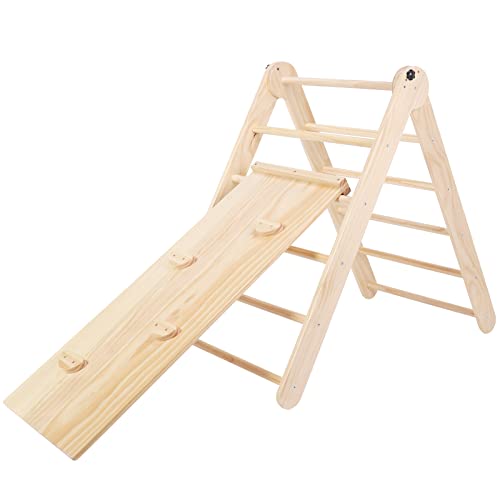- Using this climbing set (with pikler triangle and a waldord style arch) for sliding and climbing helps enhance gross motor skills, muscle training, critical thinking, body strength, and creativity.
