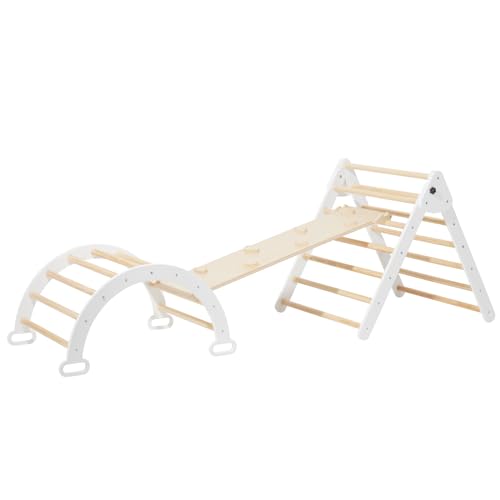 - This 3-in-1 climbing set is ideal for kids and toddlers who are developing their movement skills and is specifically designed for children aged 2 to 8 years. The set includes three different items: an arch, a ramp, and a triangle climber, allowing children to choose which one they want to use.