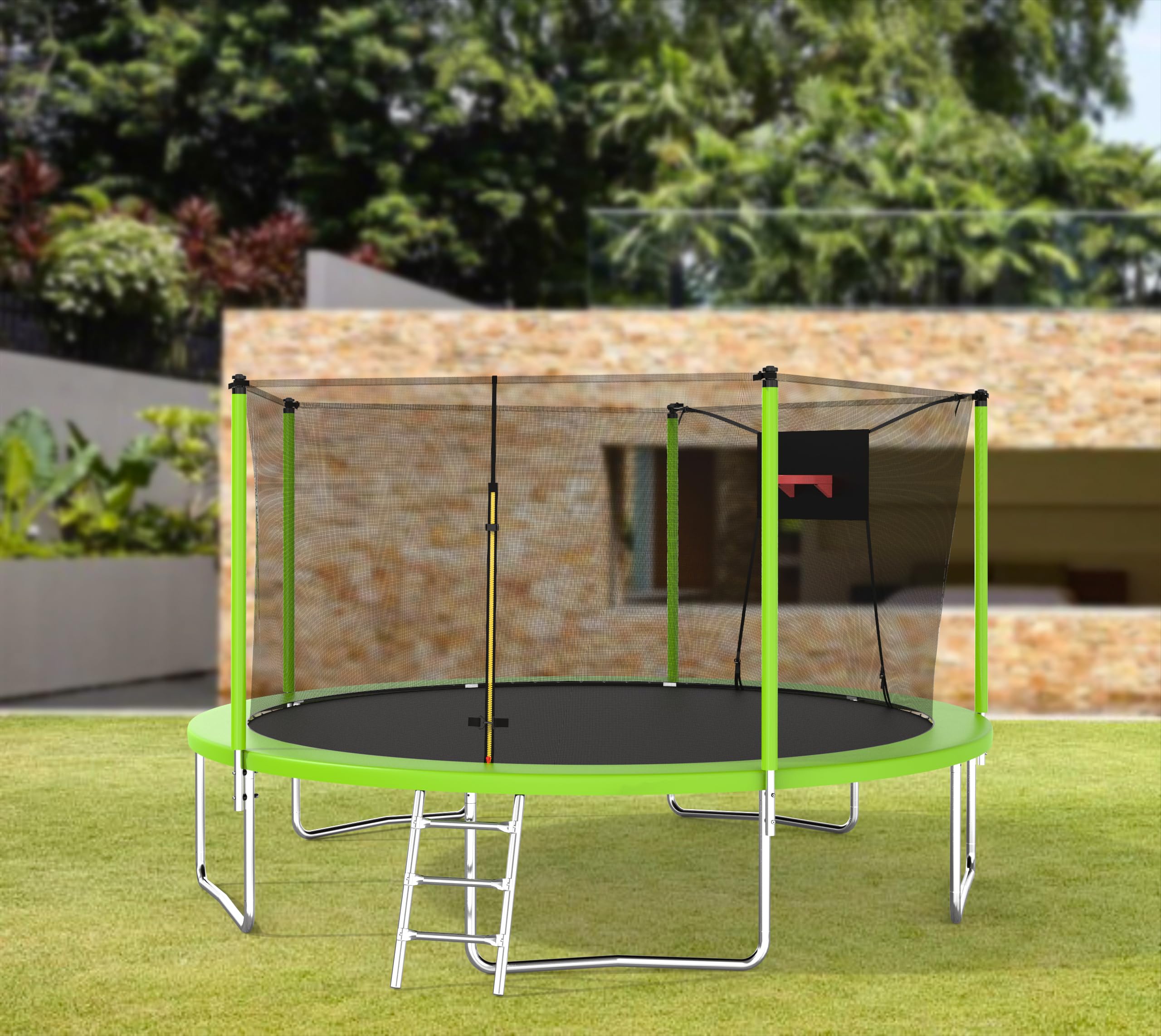 - u3010Durable Frames & Legsu3011- Our outdoor trampolines have galvanized stainless steel frames, ensuring durability, weather resistance, and rust prevention. Supported by six evenly spaced W-shaped legs, our heavy duty trampoline provides optimal stability and support.