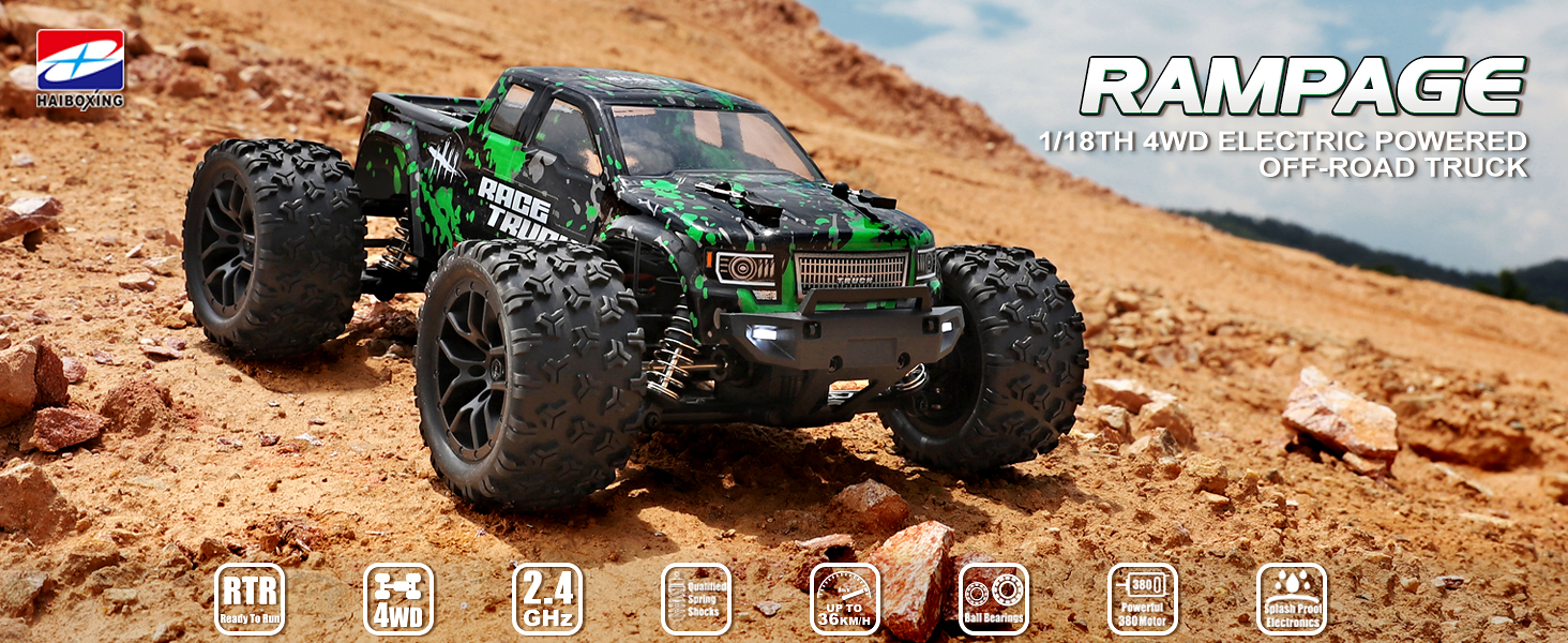 - Powered with superb and fast brushed RC 380 motor in unceasingly efficient drivetrain , this 4WD rc trucks Rampage speeds topping to 36 KPH, which finds operators in marvelous enjoyment.