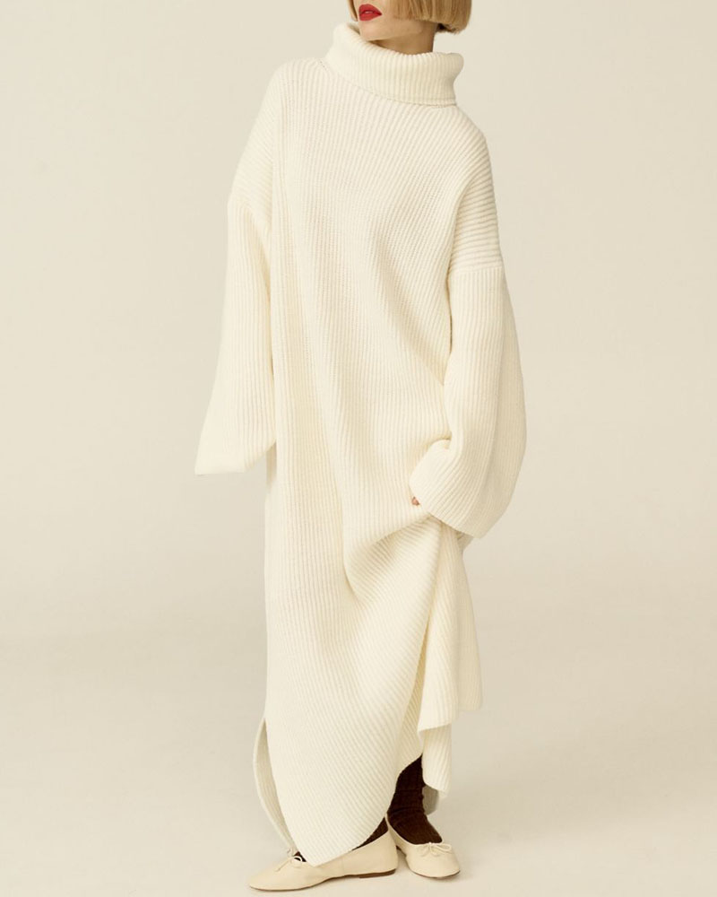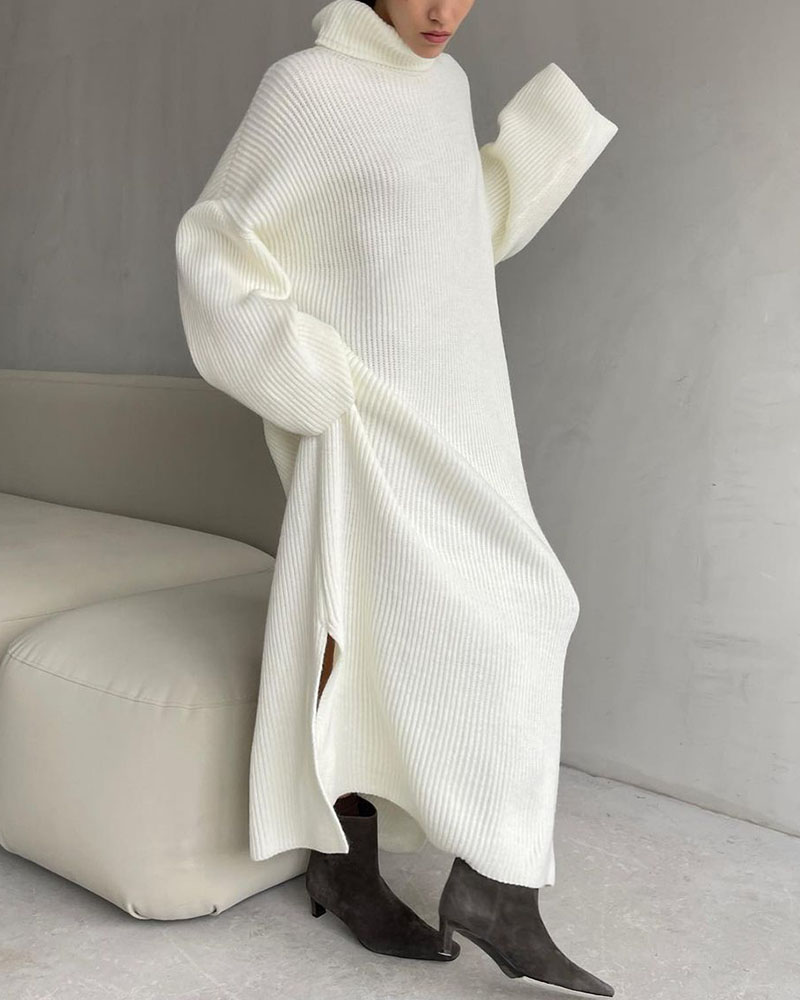 High collar slit knitted loose dress